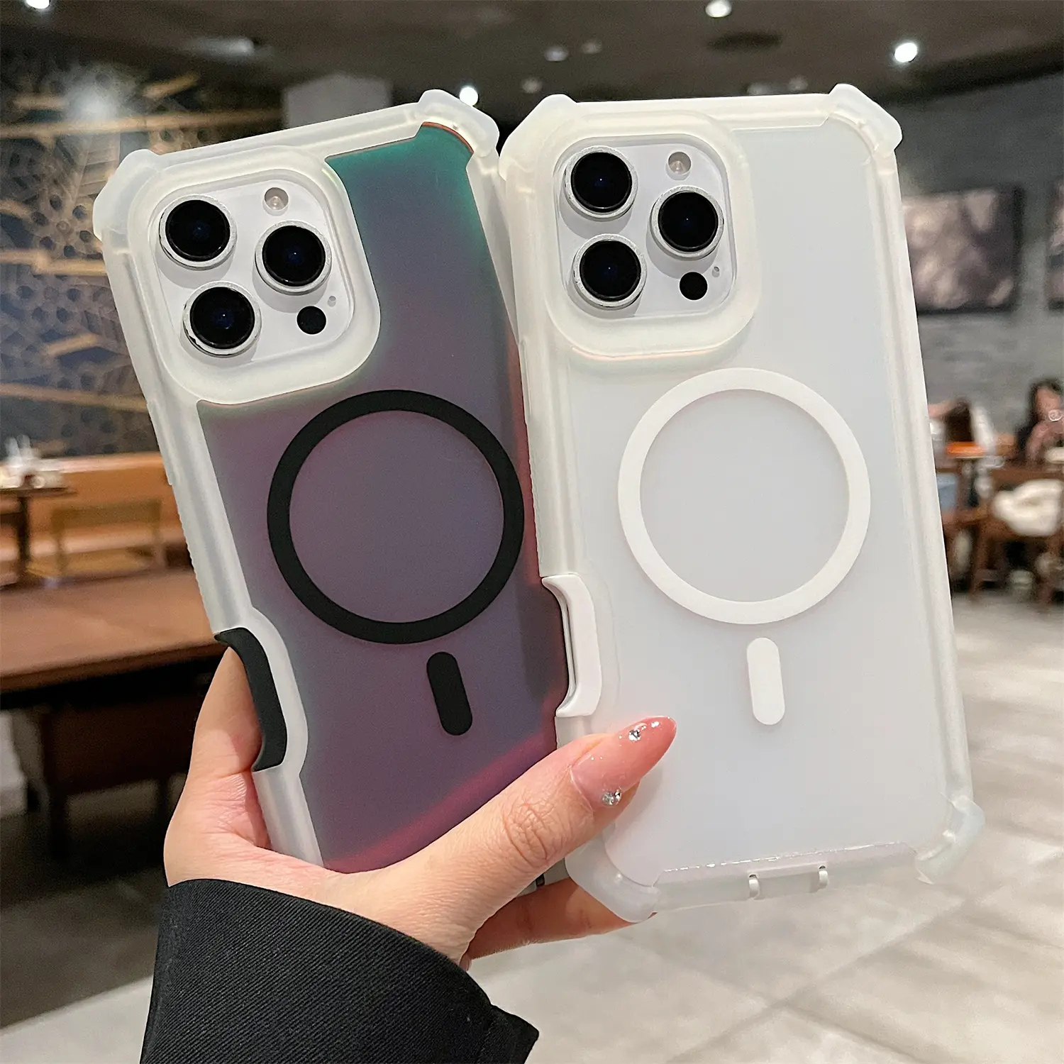 【MagSafe Compatible】Designed with a built-in magnetic ring that perfectly aligns with MagSafe chargers, power banks, and other MagSafe accessories, enabling fast, hassle-free wireless charging without removing the case. The strong magnetic force ensures a stable connection, no slipping or disconnection during charging.
