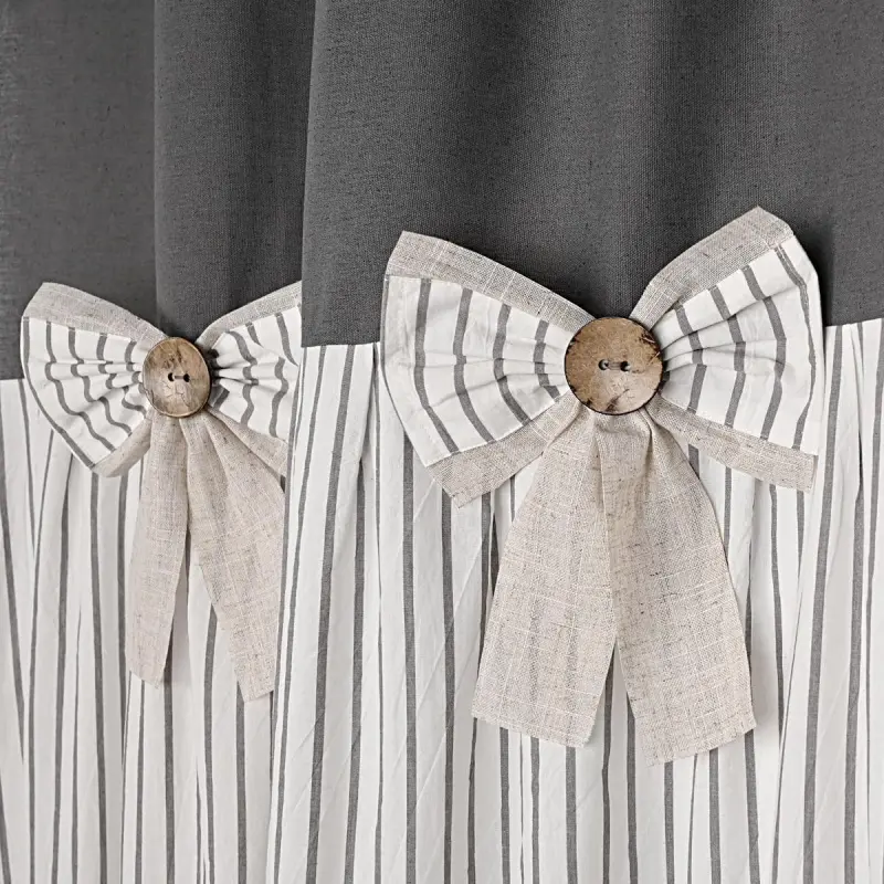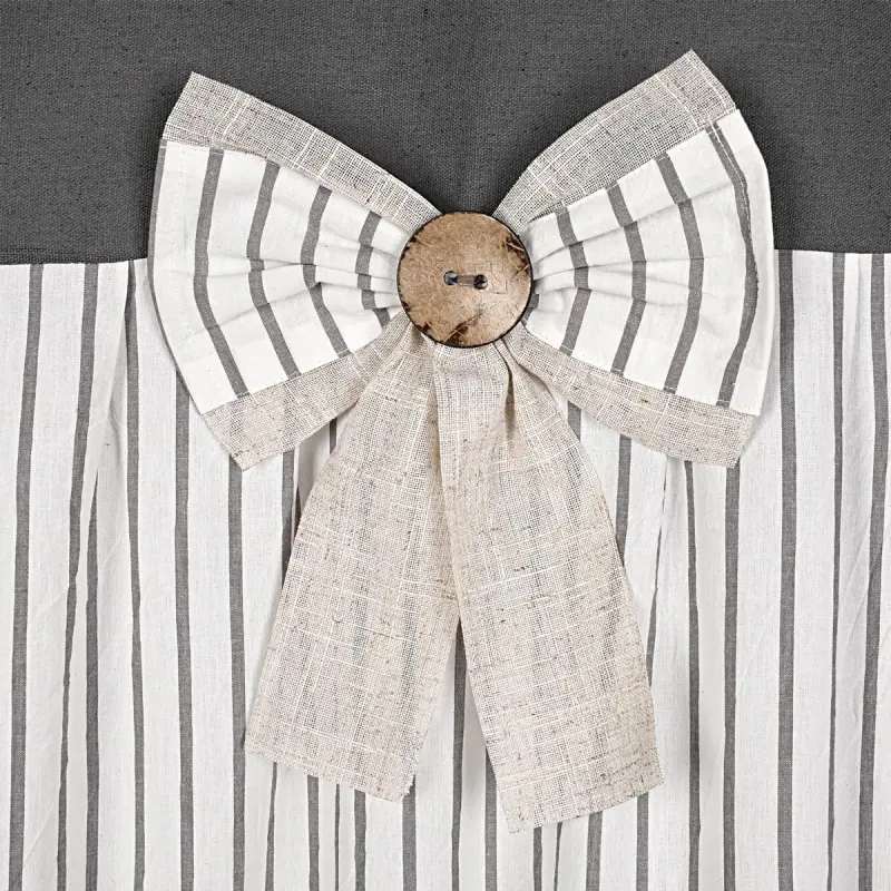 Farmhouse Grey Shower Curtain,Bowknot,Cotton Woven and Cotton Blend Fabric,Pleated Grey Stripe,Country Style,72x78 in