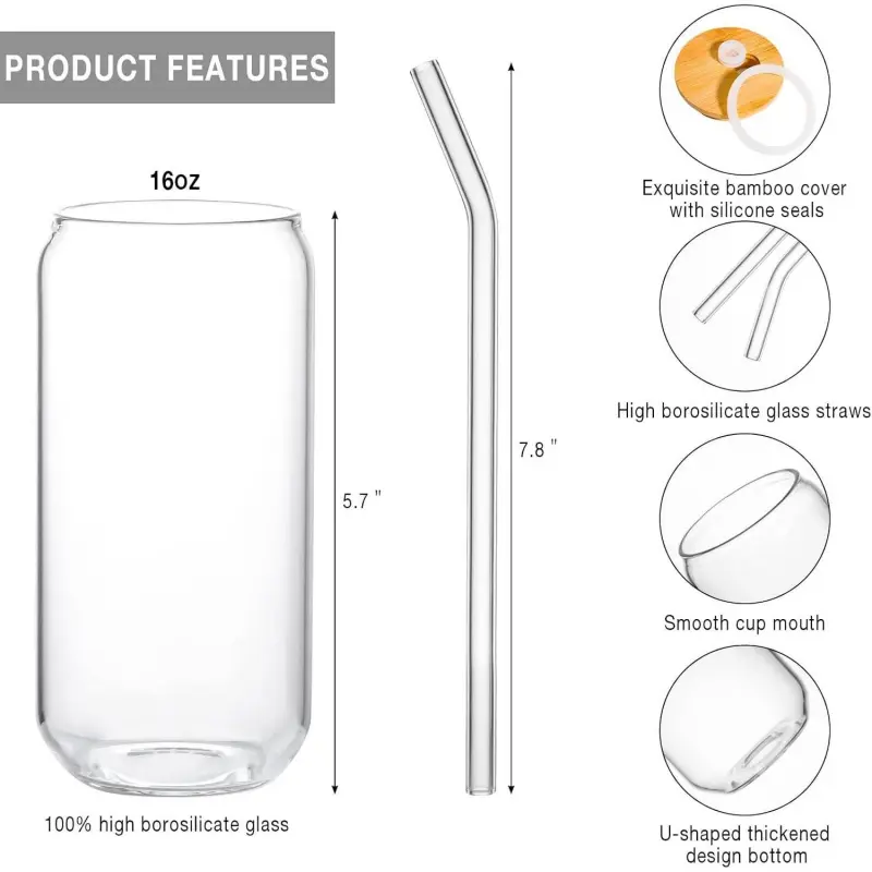 What you will get: Our glass cup set includes 1 16-ounce beer cup, 1 bamboo lid, and 1 reusable glass straw