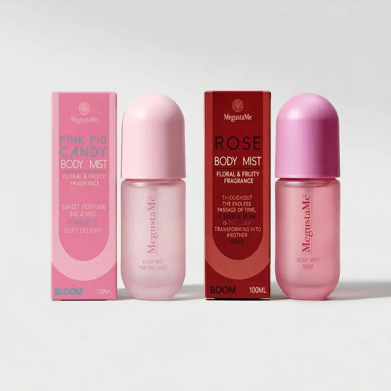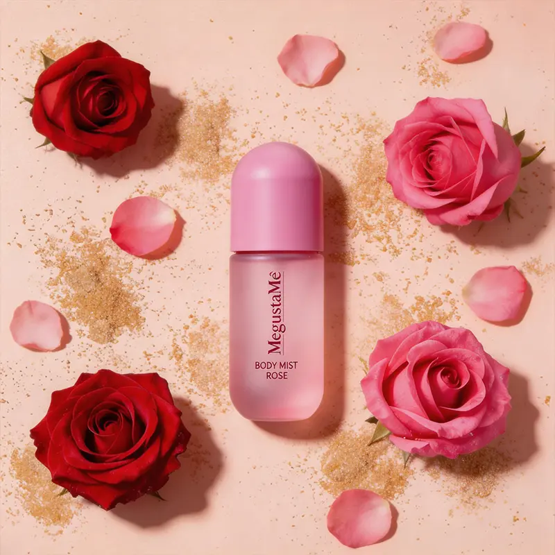 The MegustaMe 2-in-1 Hair & Body Mist Duo pairs Rose with Candy for a fresh, floral-sweet, everyday fragrance experience – naturally.
