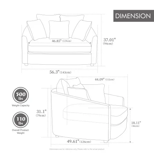 Includes 5 matching throw pillows for enhanced support. Perfect for reclining, reading, or resting, they add plush comfort and a polished look. The pillows are removable, offering flexibility and convenience.