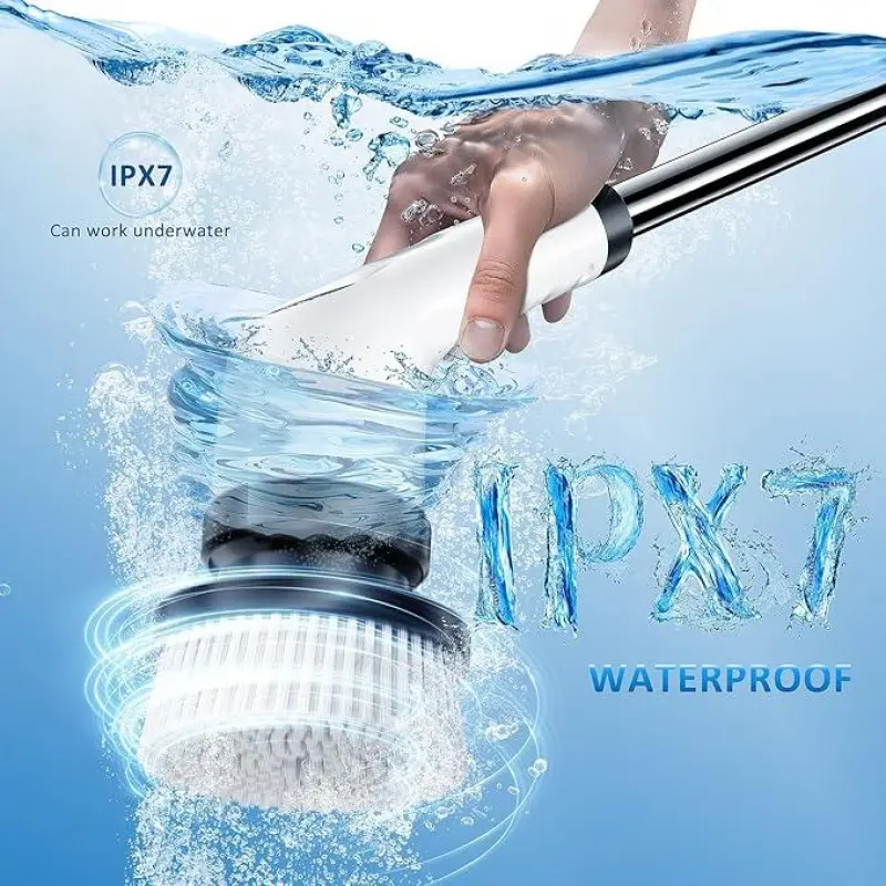 [IPX7 Waterproof Durability]The Electric Spin Scrubber features a tightly sealed design, achieving an IPX7 waterproof rating.This allows for use in moist environments.The cleaning brush heads can be washed directly under the faucet, making it for cleaning shower rooms, bathtubs, stone floors, grout, and crevices.