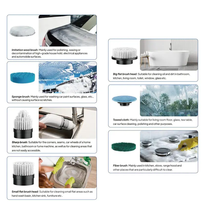 [7 Multi-Functional Brush Heads]The cordless Electric Spin Scrubber includes 7 interchangeable heads for diverse cleaning needs.It's for tackling recessed areas like bathtubs and sinks, as well as narrow spots such as corners, crevices, floors, glass, tiled walls, car surfaces, wheels, seats, furniture, and stoves.