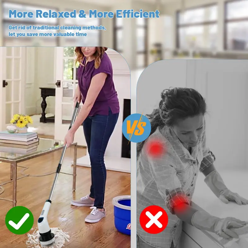 [Electric Spin Scrubber 2025 Upgraded]Designed for those with back or knee issues, the Electric Spin Scrubber eliminates the need to bend or kneel when cleaning.It extends to three lengths, making it for scrubbing bathtubs and floors without discomfort.Just grip it, and it handles all your cleaning tasks effortlessly!