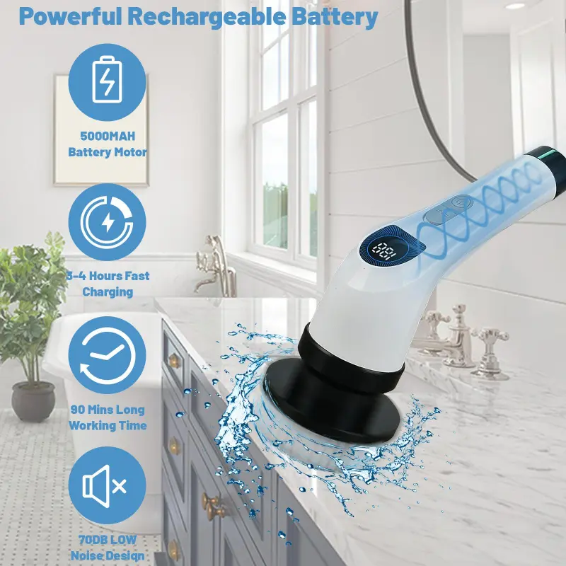 [Top-Quality & Quality Service]Our premium Electric Spin Scrubber is easy to assemble and disassemble and features USB-C fast. It simplifies daily cleaning tasks with ease. The cordless design removes the hassle of long cables, enhancing safety and convenience. We provide the after-sales service. If you encounter any problems after purchasing, please contact us as soon as possible.
