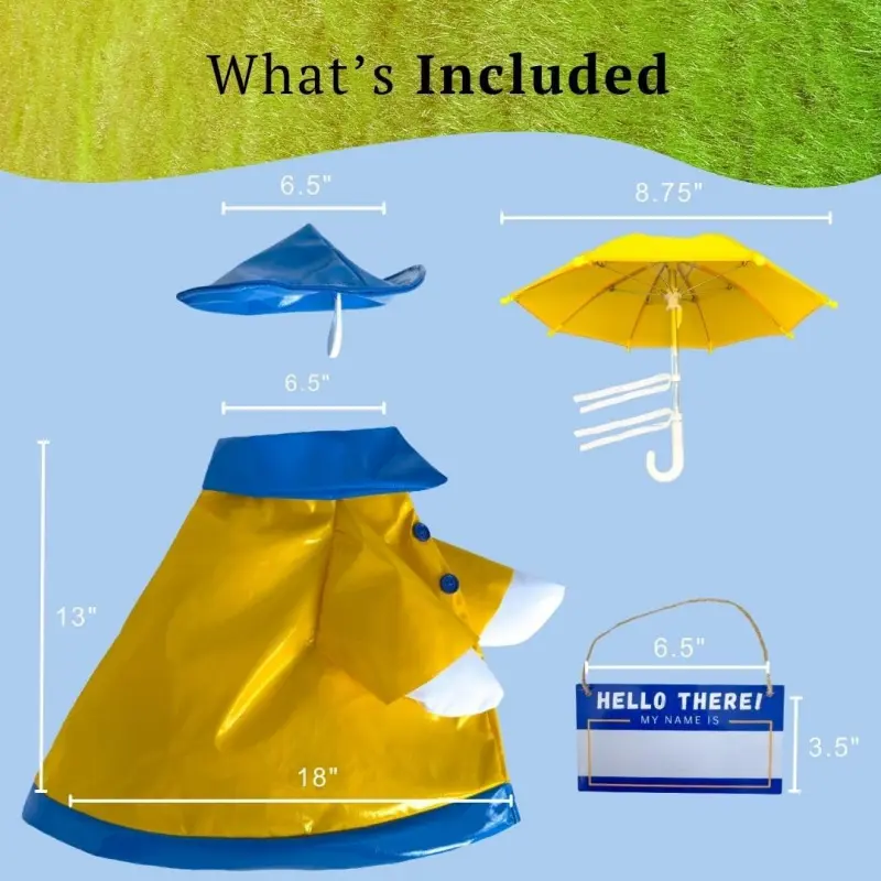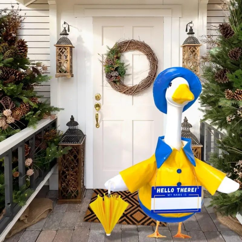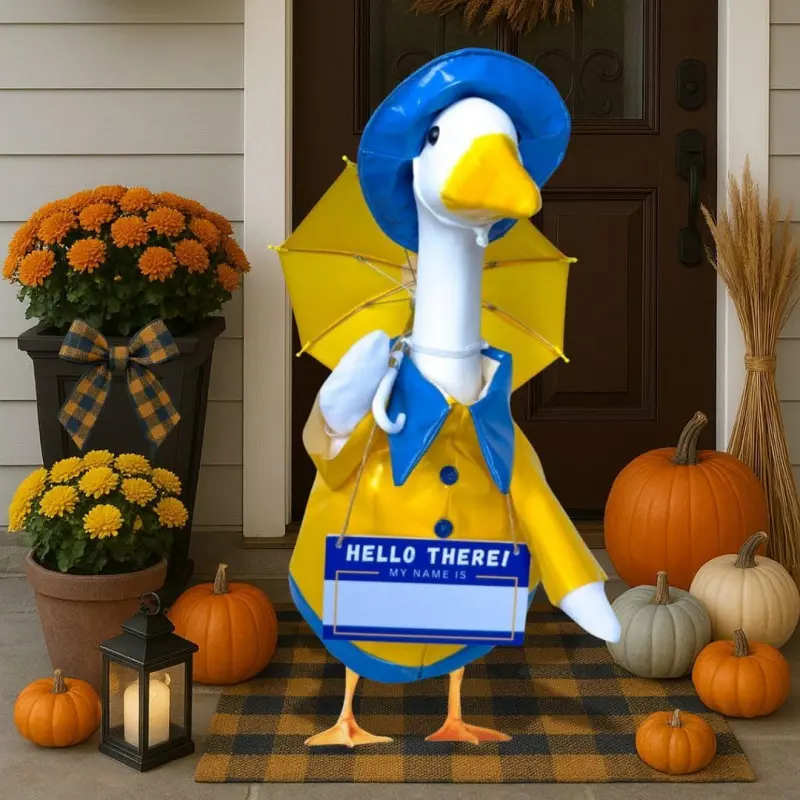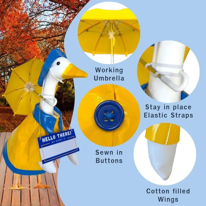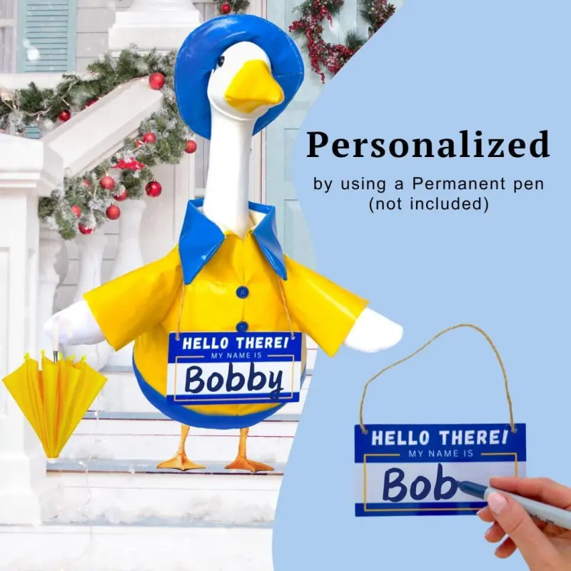 Goose Outfits Raincoat and Personalized Name Sign- Dress Up Your 23in Plastic or Concrete Goose Statue with Funny Costumes and Fall Outfit, Decor Duck Clothes for Outdoor Statues