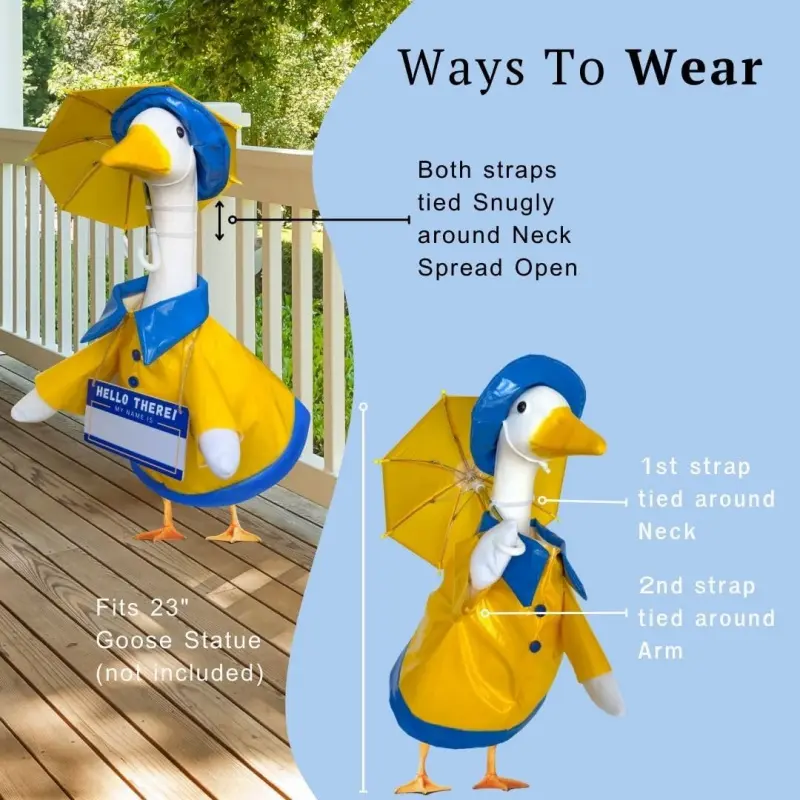 5. Goose Outfits Raincoat and Personalized Name Sign- Dress Up Your 23in Plastic or Concrete Goose Statue with Funny Costumes and Fall Outfit, Decor Duck Clothes for Outdoor Statues