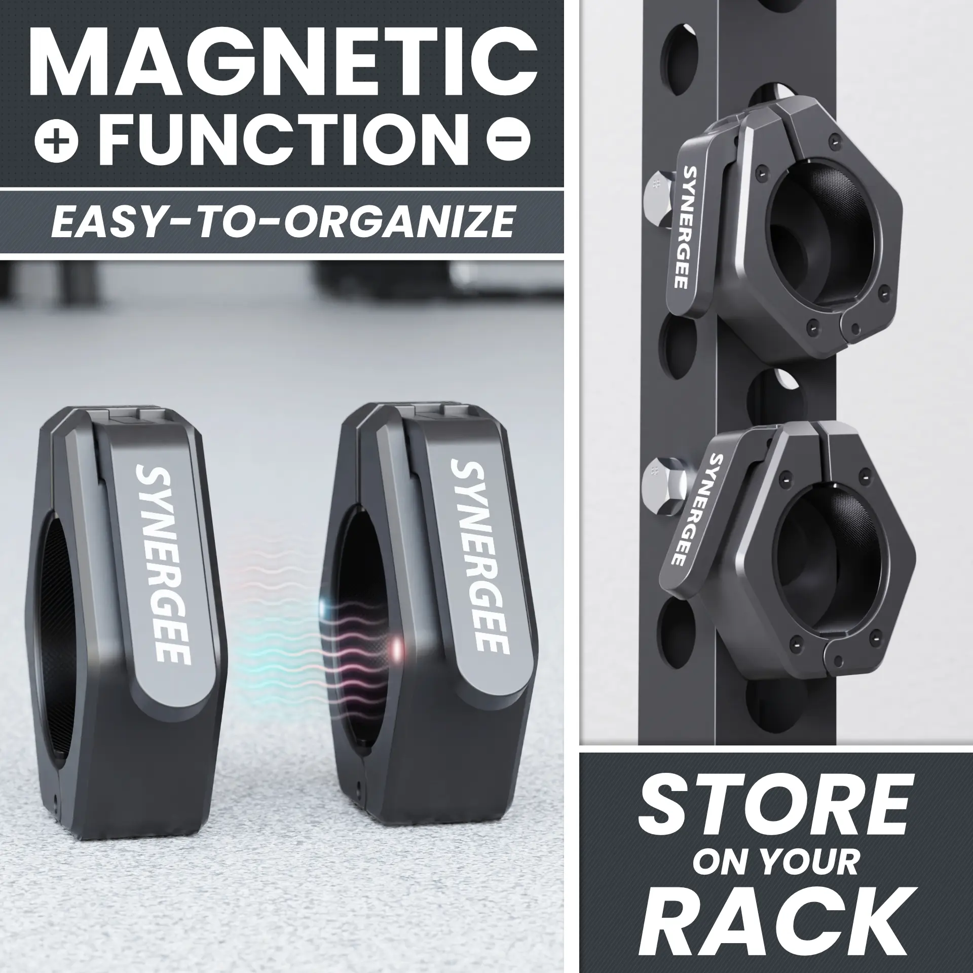 Upgrade your gym setup with Synergee’s easy-to-use, space-saving magnetic barbell collars—built for lifters who value efficiency and performance.