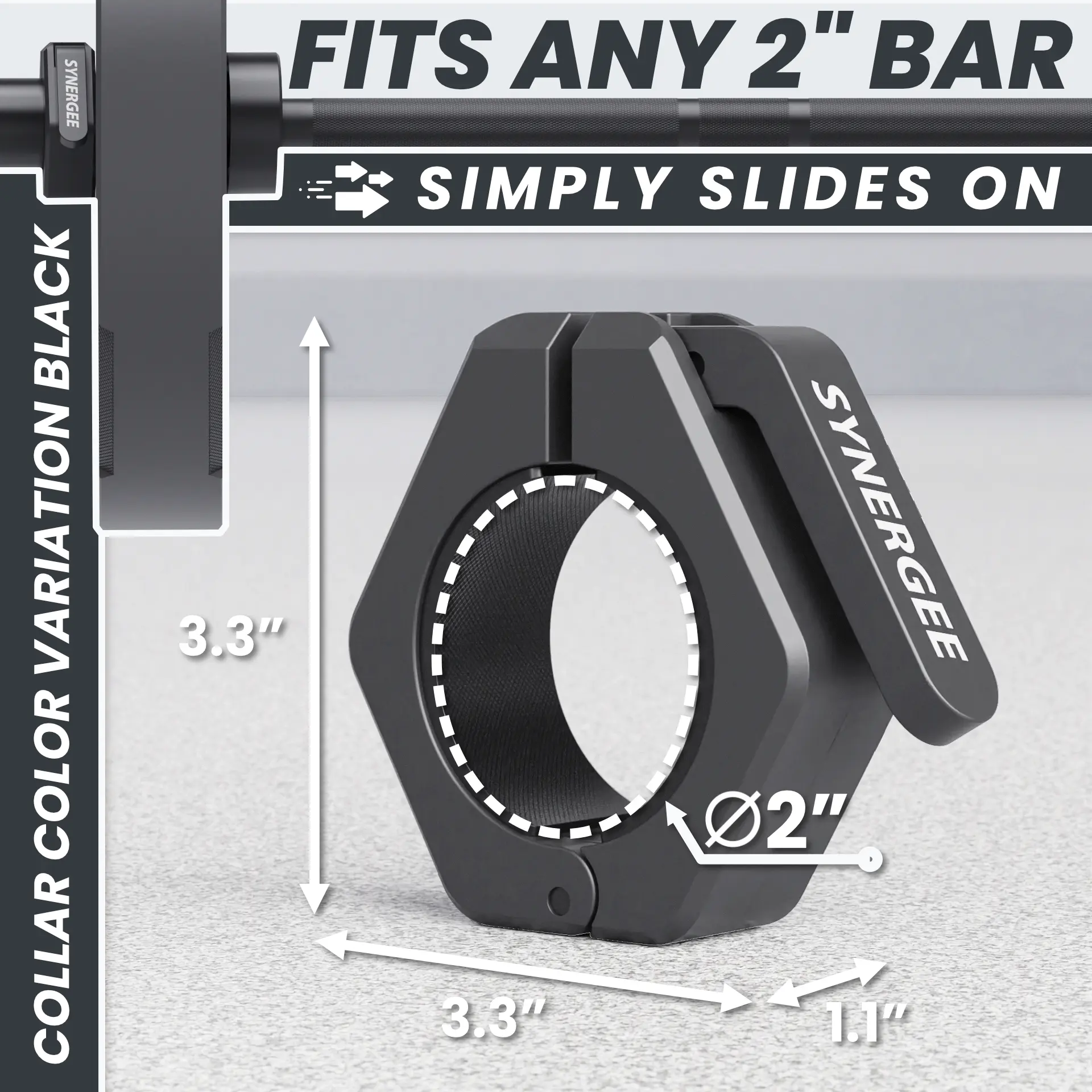 Experience fast, secure, and hassle-free weight changes with the Synergee Magnetic Plastic Barbell Collars. Designed for 2" Olympic barbells, these lightweight yet durable collars lock your plates firmly in place, giving you the stability you need for heavy lifts and high-intensity strength sessions.