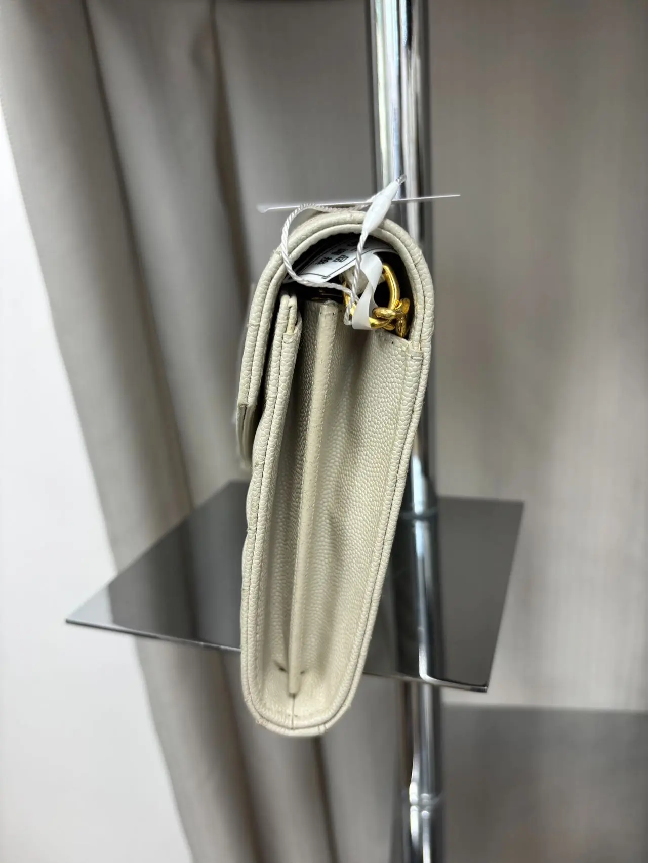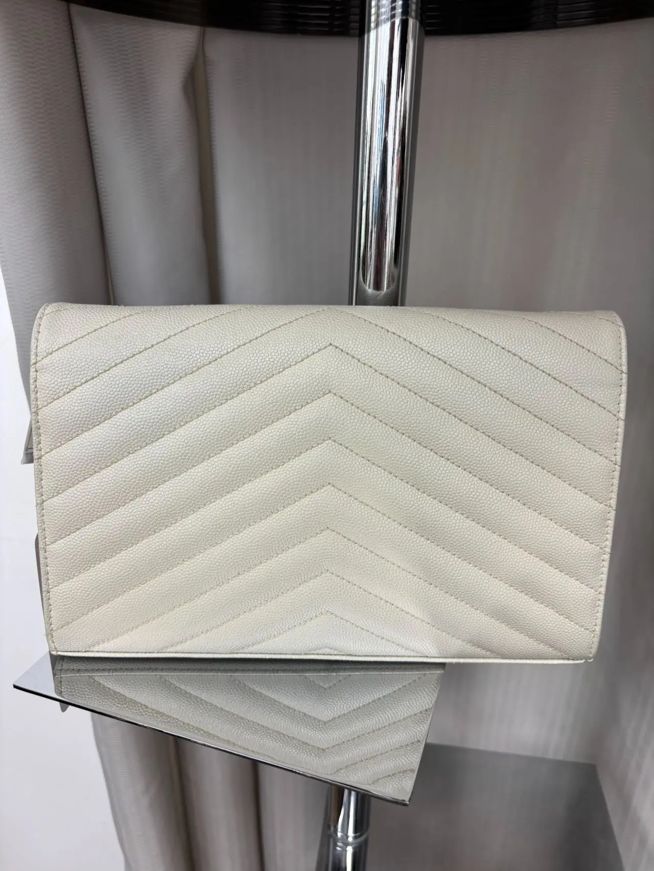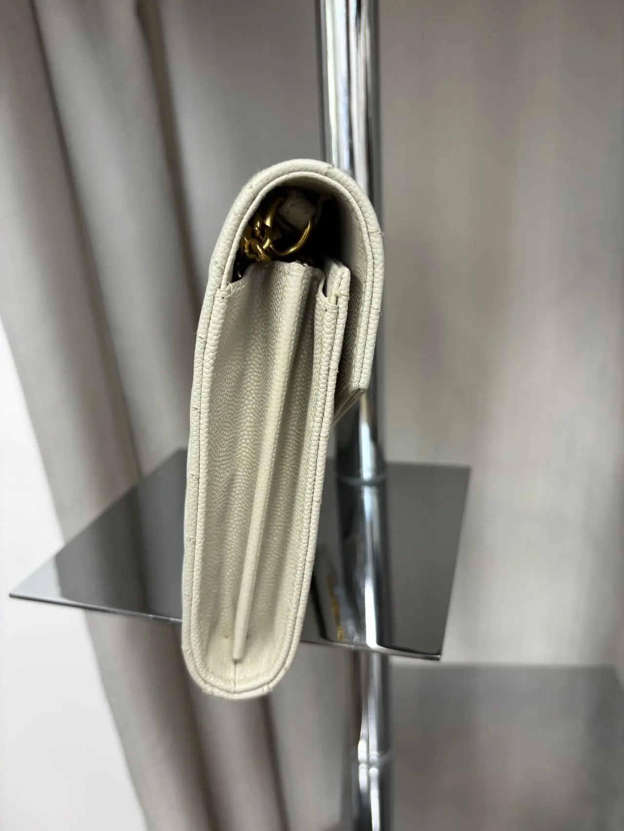 ·YSL Cassandre Envelope Wallet on Chain (WOC): This elegant wallet combines style and functionality. Crafted in Grain de Poudre Leather, it offers a sophisticated look. The Vintage White color adds a timeless charm. Perfect for those who appreciate classic design.