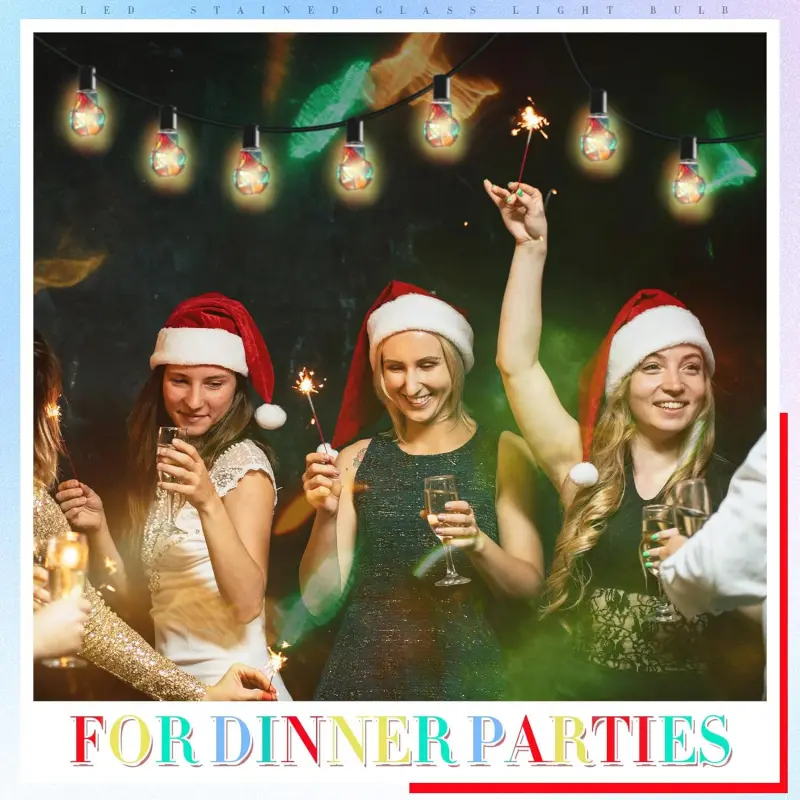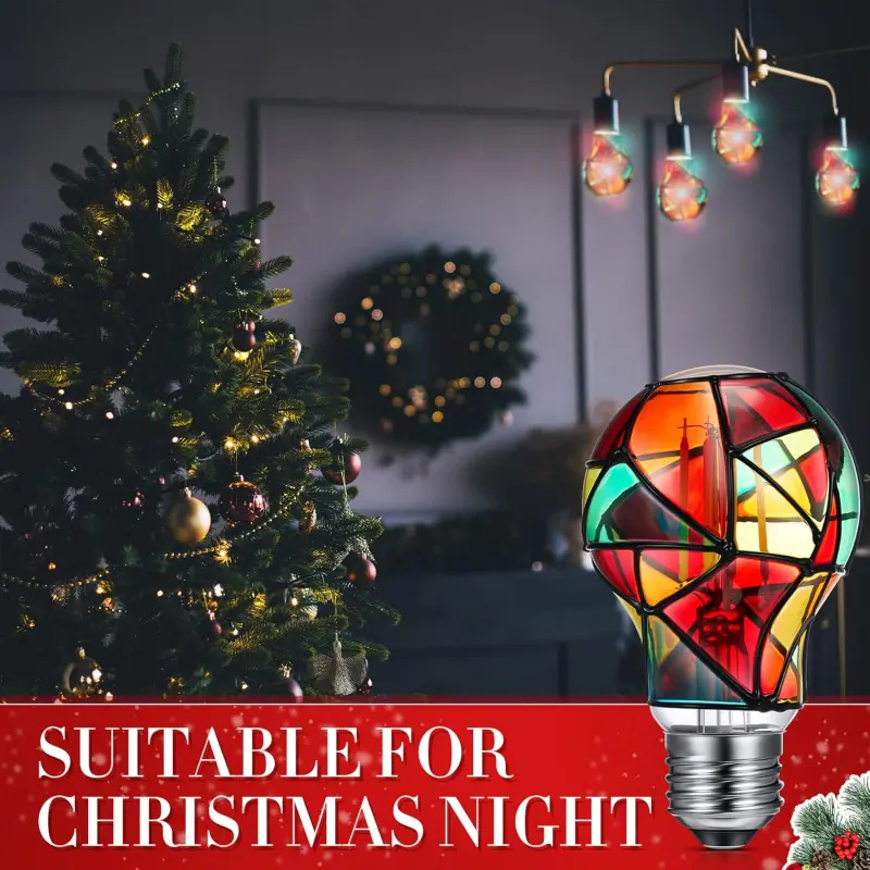5. PLL 2 Pcs Stained Glass LED Light Bulb E26 Base Colorful Lightbulb 120V Flickering Lightbulb Bulbs for Christmas Xmas Home Balcony Party Decoration (A60)