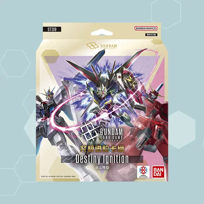 Brand new, factory-sealed Chinese edition of the Gundam Card Game Ultimate Deck Destiny Ignition [ST09]. This complete pre-built deck is ready to play straight out of the box, featuring powerful cards and iconic characters and mobile suits from the Gundam series. It includes a full set of playable cards, strategy cards, and official accessories designed for both casual play and competitive battles. Perfect for collectors and players alike, this sealed deck ensures untouched, mint condition and authentic contents.