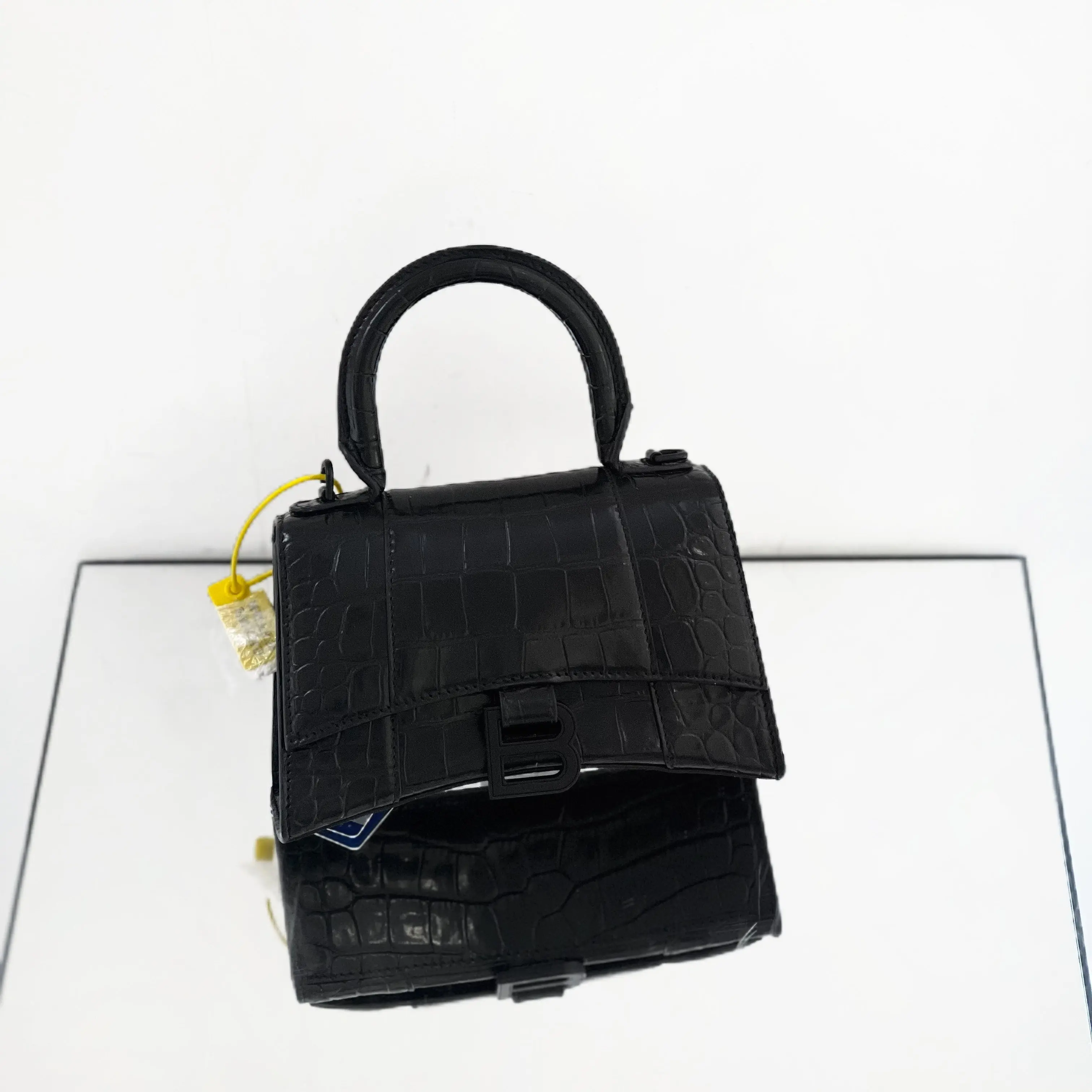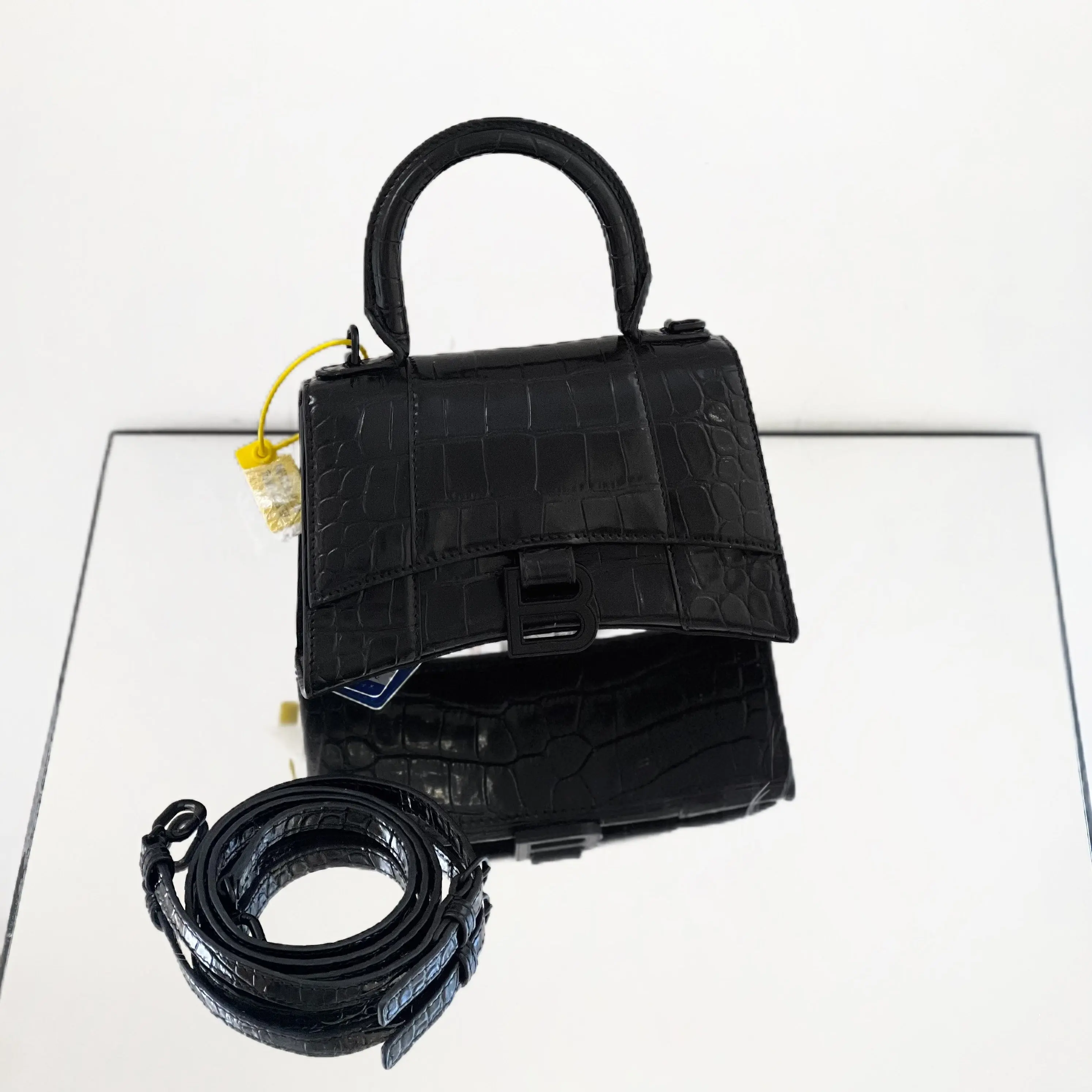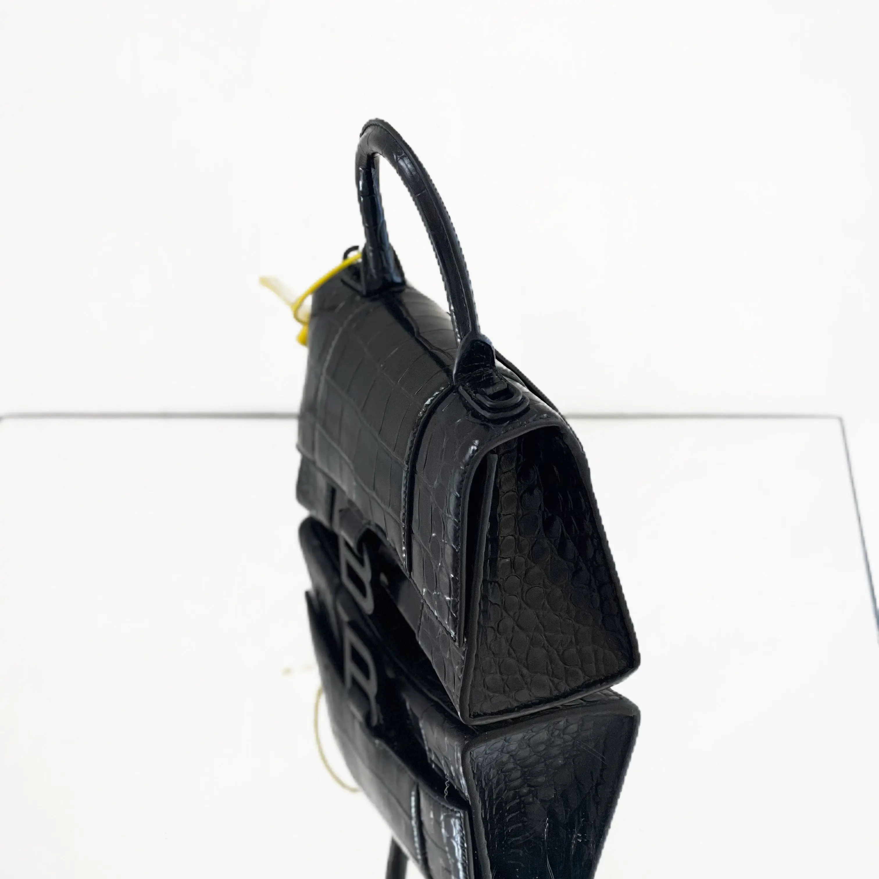 Pre-owned leather Crossbody Balenciaga Hourglass XS Top Handle Bag – Black Shiny Crocodile Embossed Calfskin