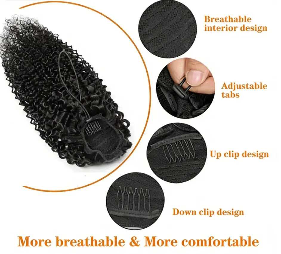 Binf Ponytail Human Hair Afro Curly Ponytail Quick Weave Hair Extensions Drawstring Ponytail Clip In Hair Extensions Remy Human Hair Curly Hair 8-26inches