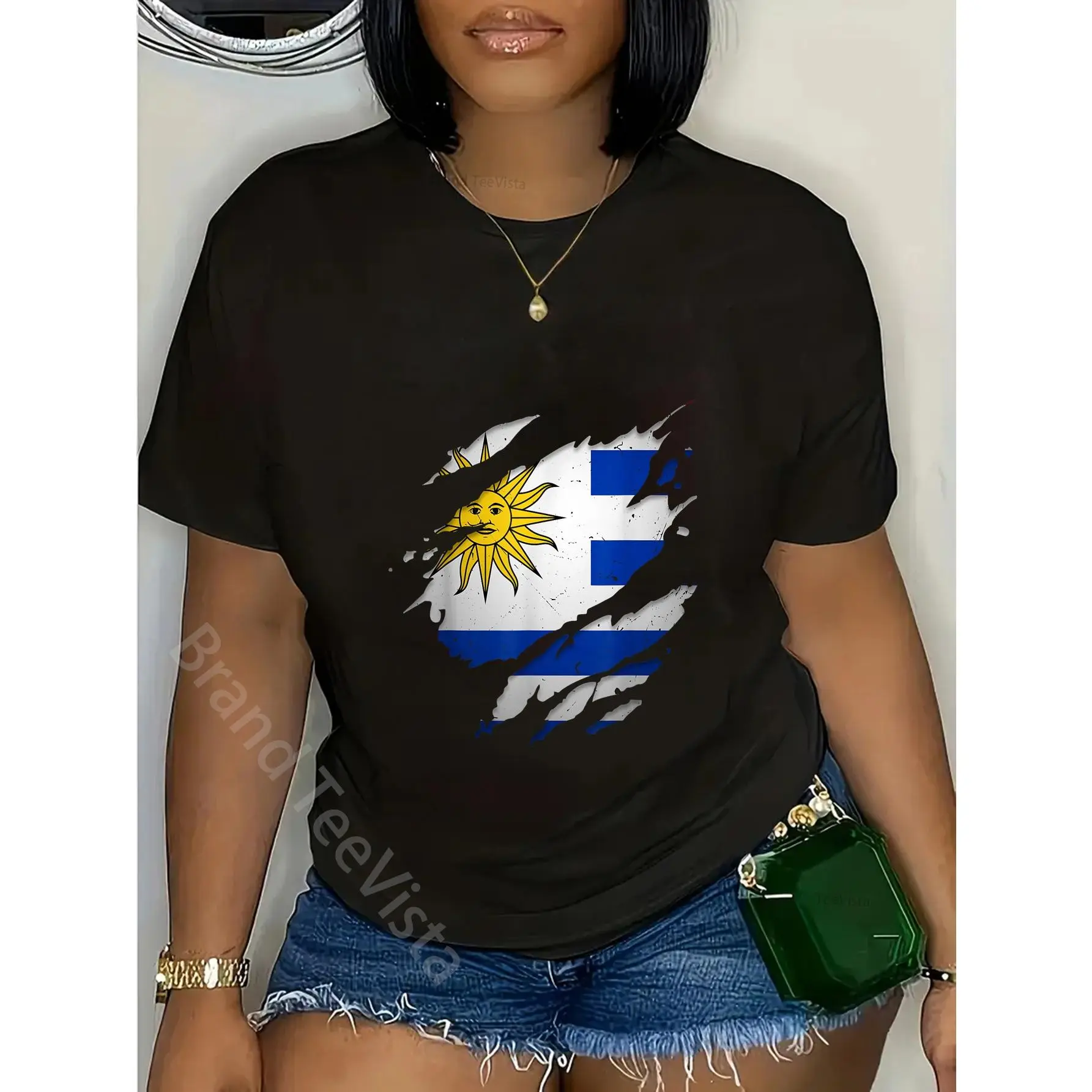 5. 100% Cotton Proud Uruguayan Designs | Torn Ripped Uruguay Flag T-Shirt