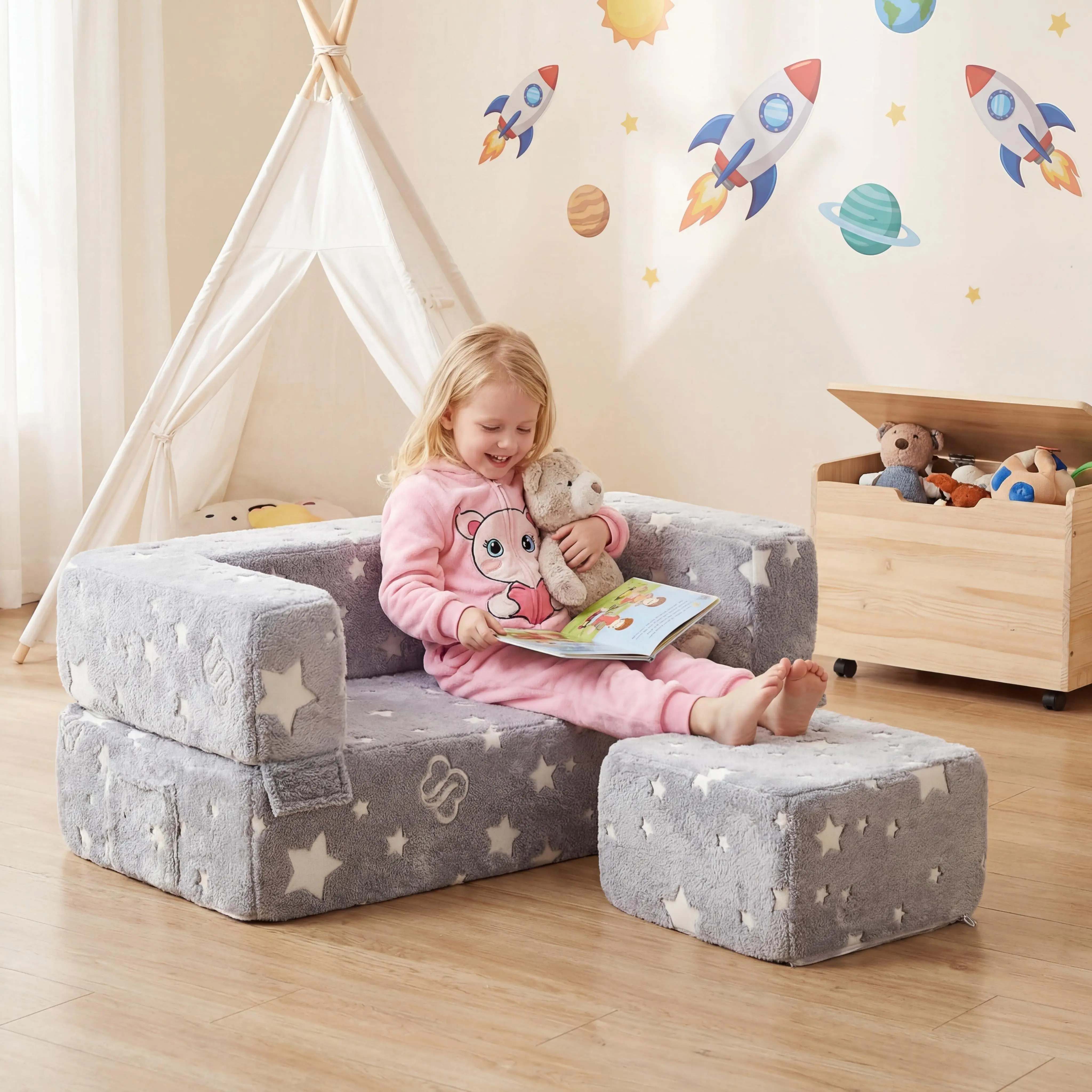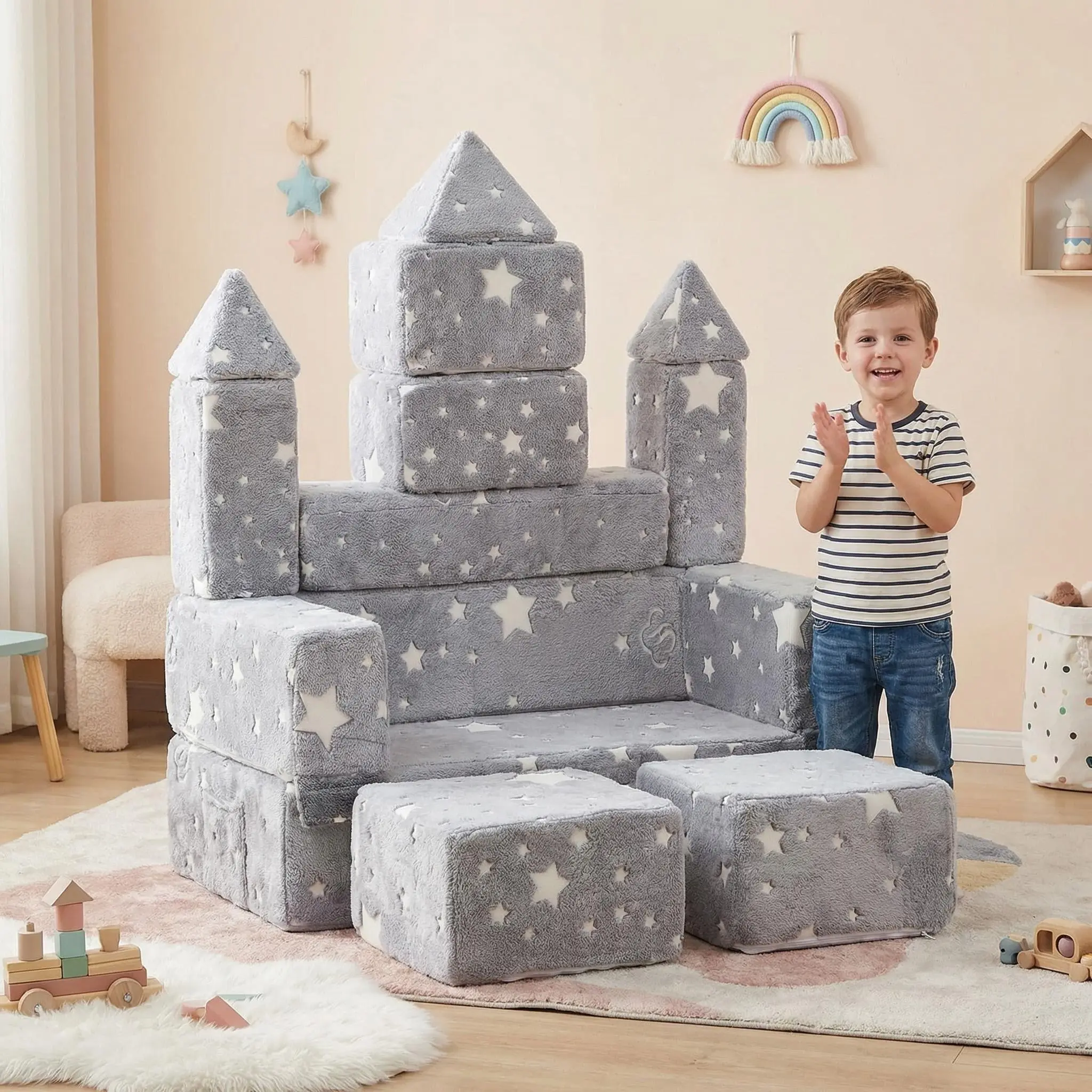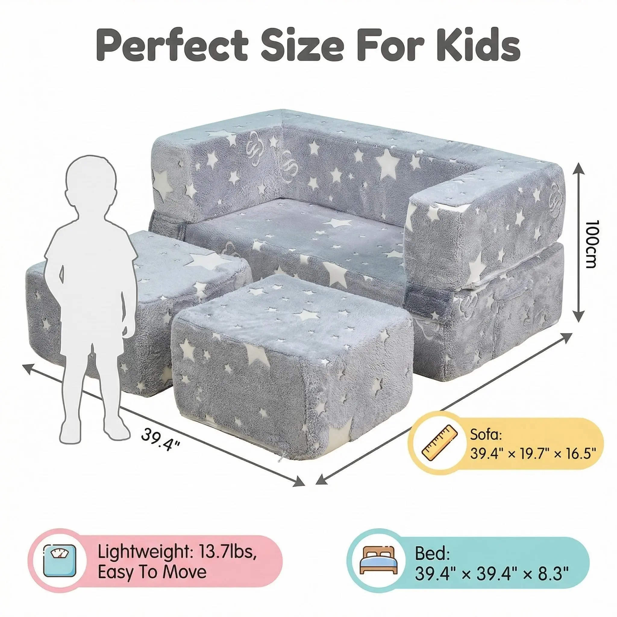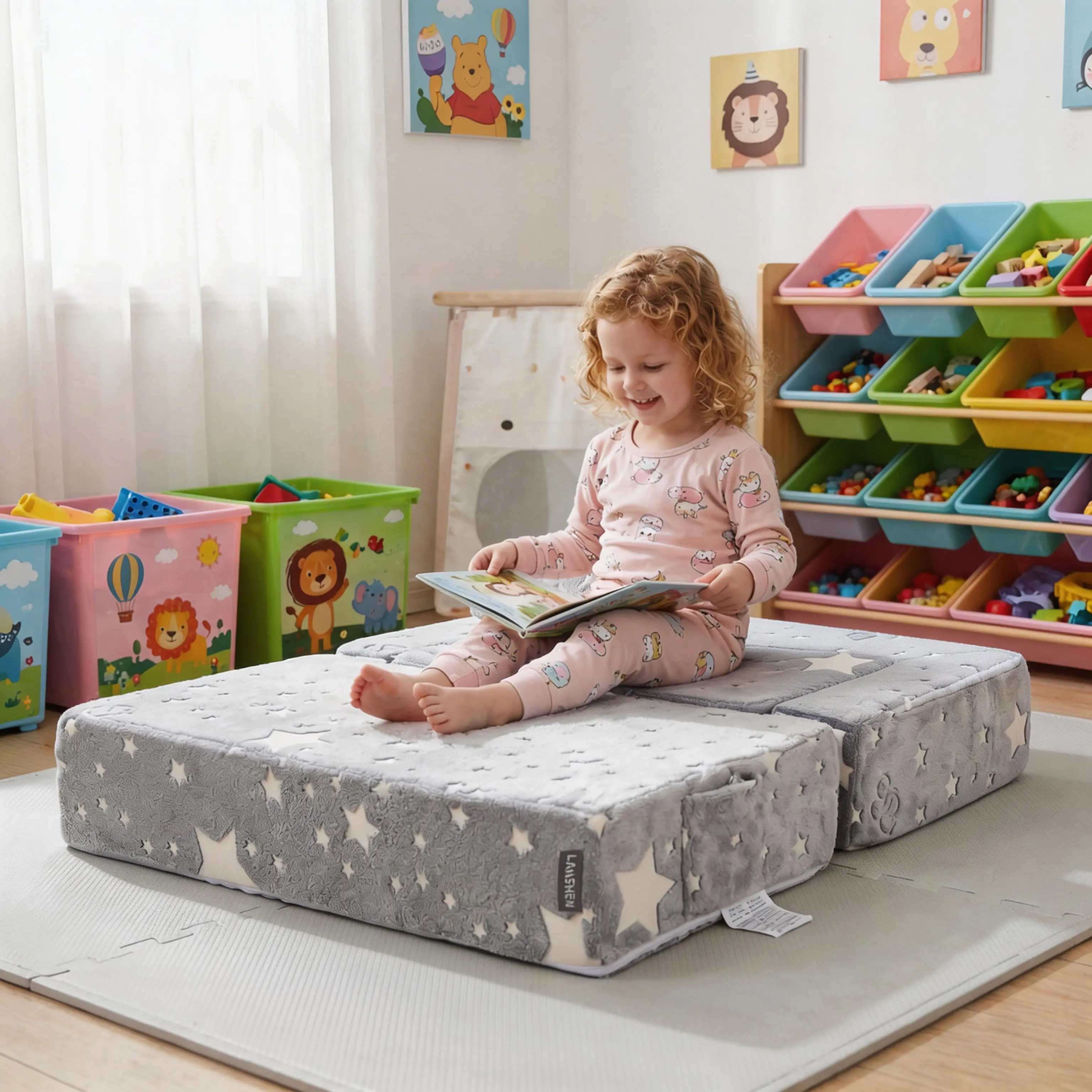 3-in-1 Kids Play Couch for Toddler, Imaginative Dark Gray Star