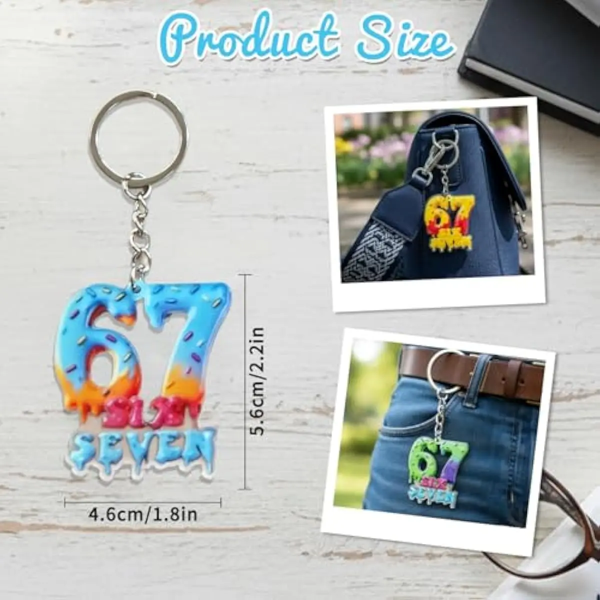 This 67 themed keychain is a perfect blend of fashion and practicality. The meme and ins-style design makes it a standout accessory for backpacks, keys, and personal items. Suitable for daily use, gifting, and sharing with friends. The durable material ensures long-term use. Whether for personal use or bulk event needs, it meets the diverse demands of young people seeking style and functionality.