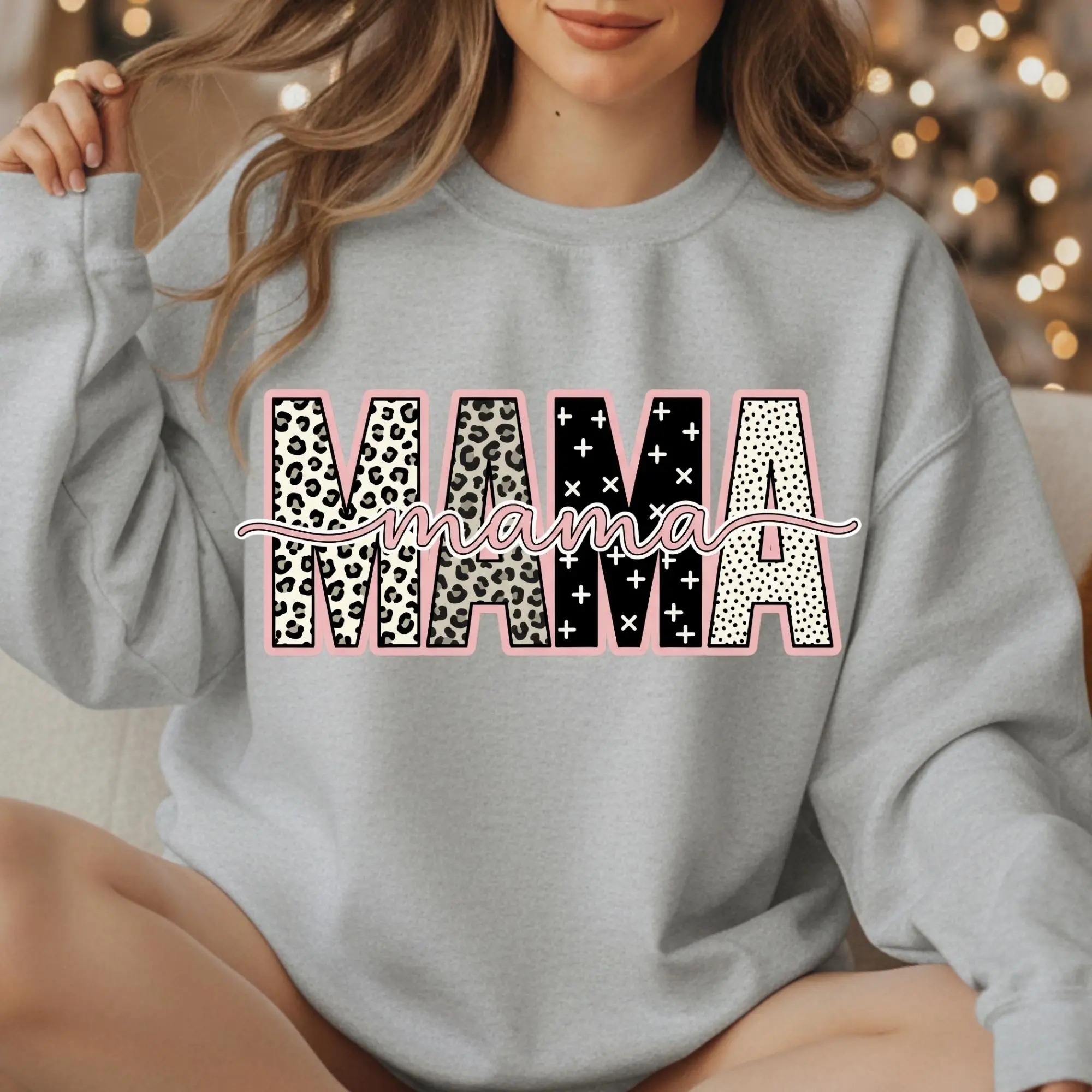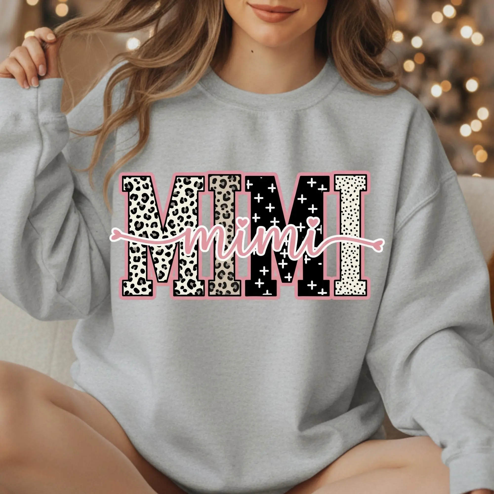 Mothers Day Preppy Leopard Mama Gigi Mimi Nana Crewneck Sweatshirt
