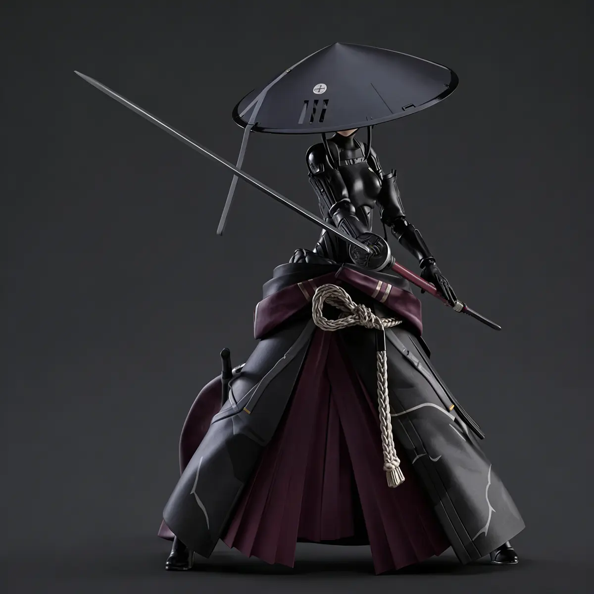 Figma Action Figure Series: Ronin Mecha-Musume Wandering Samurai Wasteland Drifter with Detailed Mechanical Armor & Katana Accessories