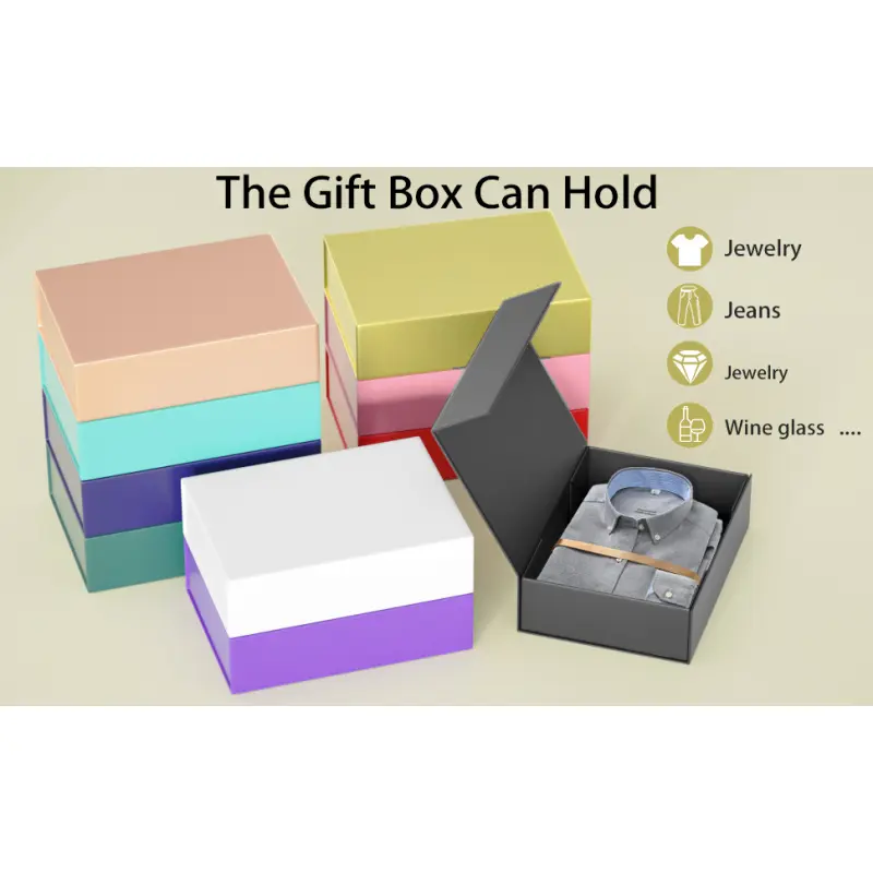 💝HIGH QUALITY MATERIAL: This gift box is made of high quality recyclable cardboard material with a glossy surface.Sturdy and beautiful.No tears.Durable, gift box size: 11.9" x 8.5" x 3.3" (1 set).💝EASY TO ASSEMBLE: Rectangular collapsible gift box with magnetic lid for easy opening and closing.Quick assembly, no extra tape required, easy to fold together in 2 steps, just peel off the triangle sticker, then assemble and glue the box.Save your valuable time and effort.💝MAGNETIC SEALING LID: Designed with two super magnetic buttons for sealing performance and stronger and more durable than other products with only one magnetic button.The box can be opened and closed repeatedly without any problems.The sturdy gift box can be used as a reusable gift box.💝OUTSTANDING FEATURES: The beautiful gift box allows you to wrap your gift without having to find wrapping paper, ribbon or tape.This simple gift box will enhance your gift and turn it into a showpiece.💝WIDE RANGE OF APPLICATIONS: The gift box can hold clothes, jewelry, photos, perfumes, chocolates, toys and more. It is the ideal gift box for the presentation of gifts. The beautifully wrapped box ensures that your gift is. Make sure to make your gift stand out on Mother's Day, Thanksgiving Day gift, Christmas gift, birthday party gift, wedding gift or any celebration.
