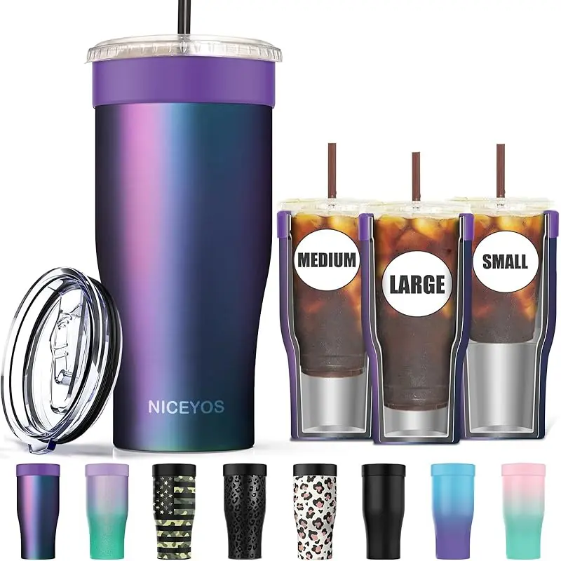 Niceyos coffee sleeve is made of high-quality 18/8 stainless steel, following the standards of the United States.With advanced double-layer insulation technology can keeps the ice cubes in coffee for up to 12 hours.So you can savor coffee at your own pace.