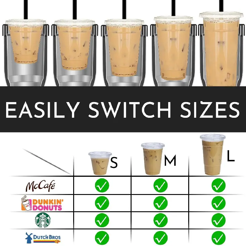 UPGRADED UNIVERSAL DESIGN - The LATEST 3-in-1 versatility design, works with all small (16-20 oz), medium (22-28 oz), large (30-32 oz) coffee cups for popular coffee brands, such as Starbucks, Dunkin Donuts, Dutch Bros, McDonalds, etc.NOTE: The silicone ring needs to be removed to accommodate the large size (30-32 oz).
