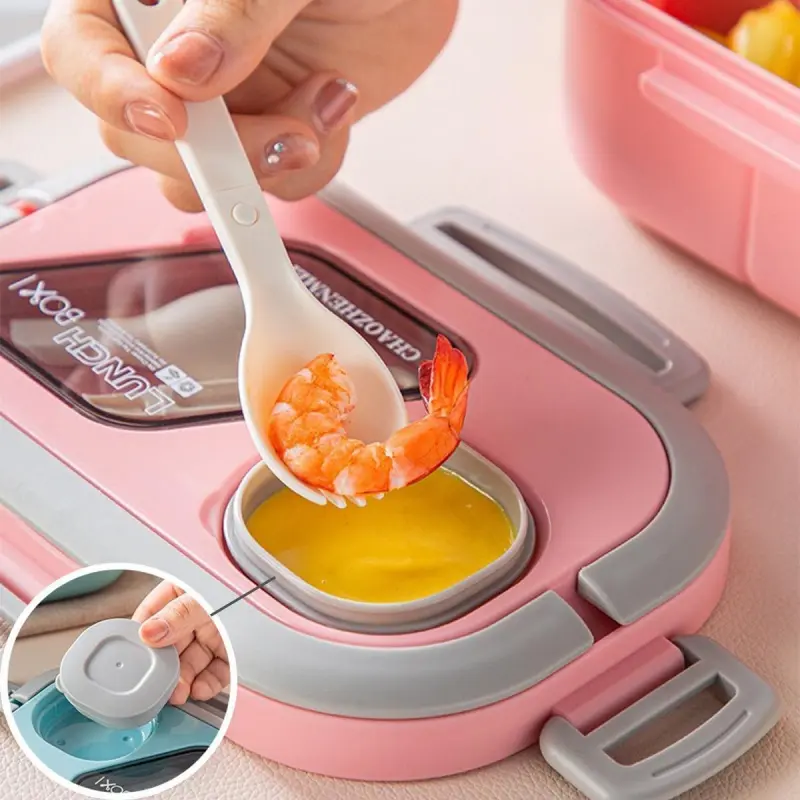 [Comprehensive Set]: With a lunch box, cup, and storage bag included, this set offers everything needed for a meal on the go, complete with a spoon for immediate use.