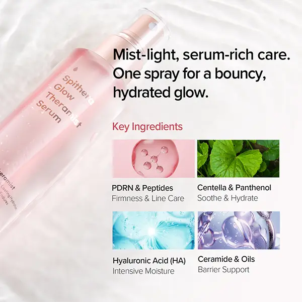 ·[SPITHERA Barrier & Elasticity Support] Powerfully infused with PDRN, Peptides, and Ceramides to reinforce the skin barrier and improve elasticity. This serum-rich care provides intensive smoothing and plumping effects with every spray.