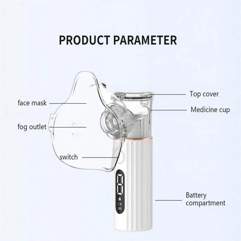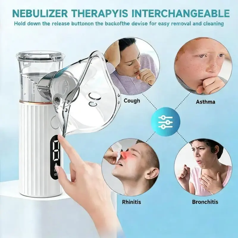 Handheld Portable Mesh Nebulizer with LED Interface & Auto-Cleaning Breathing. Ideal for Adults & Kids at Home. Suitable for adults, children, and pets. Ultra-quiet operation, perfect for kids and nighttime treatments. Supports battery-powered and plug-in operation for convenience.