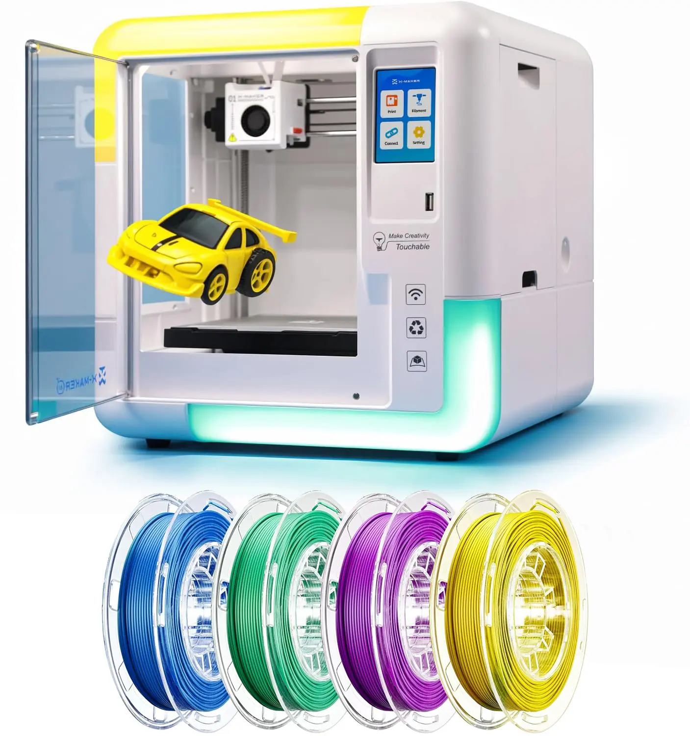 Includes the AOSEED X-MAKER AI+ plus 4 PLA filaments, so kids can print more, explore more ideas, and enjoy longer creative time without needing to buy extra materials.