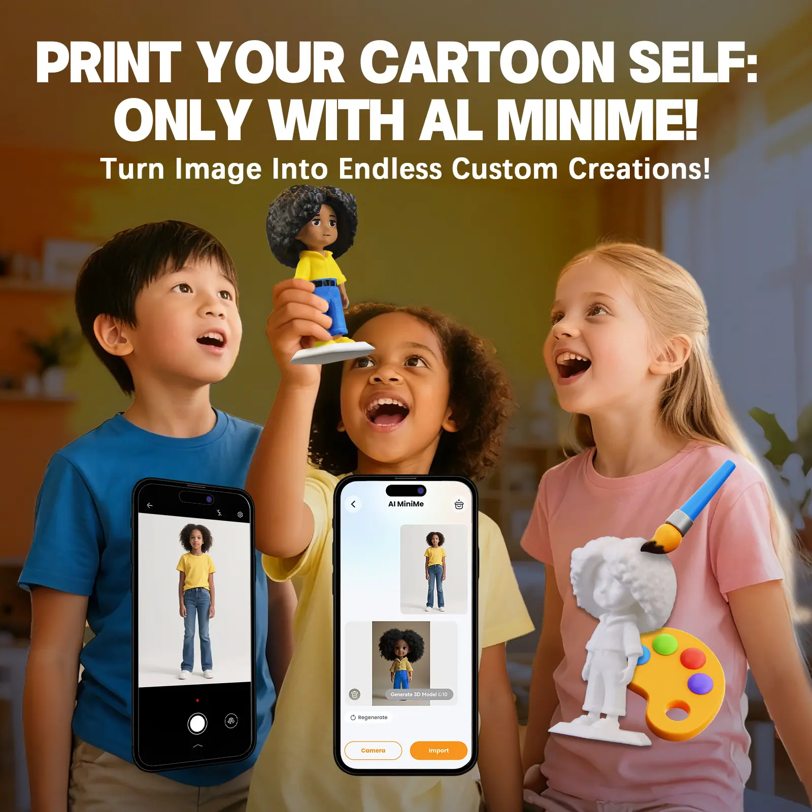 Kids can turn drawings, voice, or ideas into real 3D models. Create toys, characters, and fun projects—no experience needed.