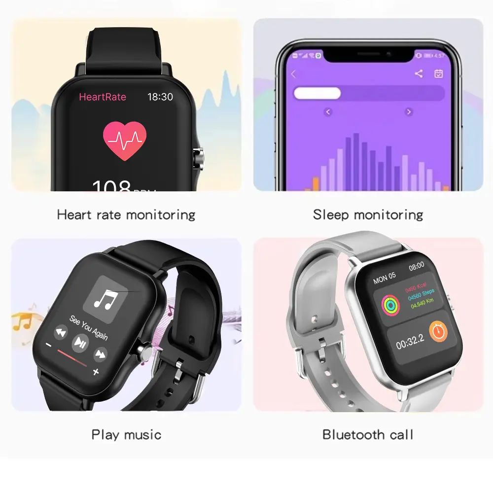Numerous features await your exploration! Weather, pedometer, voice assistant, find my phone, sedentary reminder, remote camera control, dialer, alarm clock, calculator, and many more—all in one place. Experience even more! Real-time weather synchronization with local weather information displays today's and future weather forecasts. Thoughtful bedtime reminders automatically lower screen brightness to help you develop a regular sleep schedule. Cardiopulmonary and sleep analysis more accurately determines sleep structure for higher quality sleep. Set water-drinking times to remind you to drink water and maintain healthy habits for your physical and mental well-being.