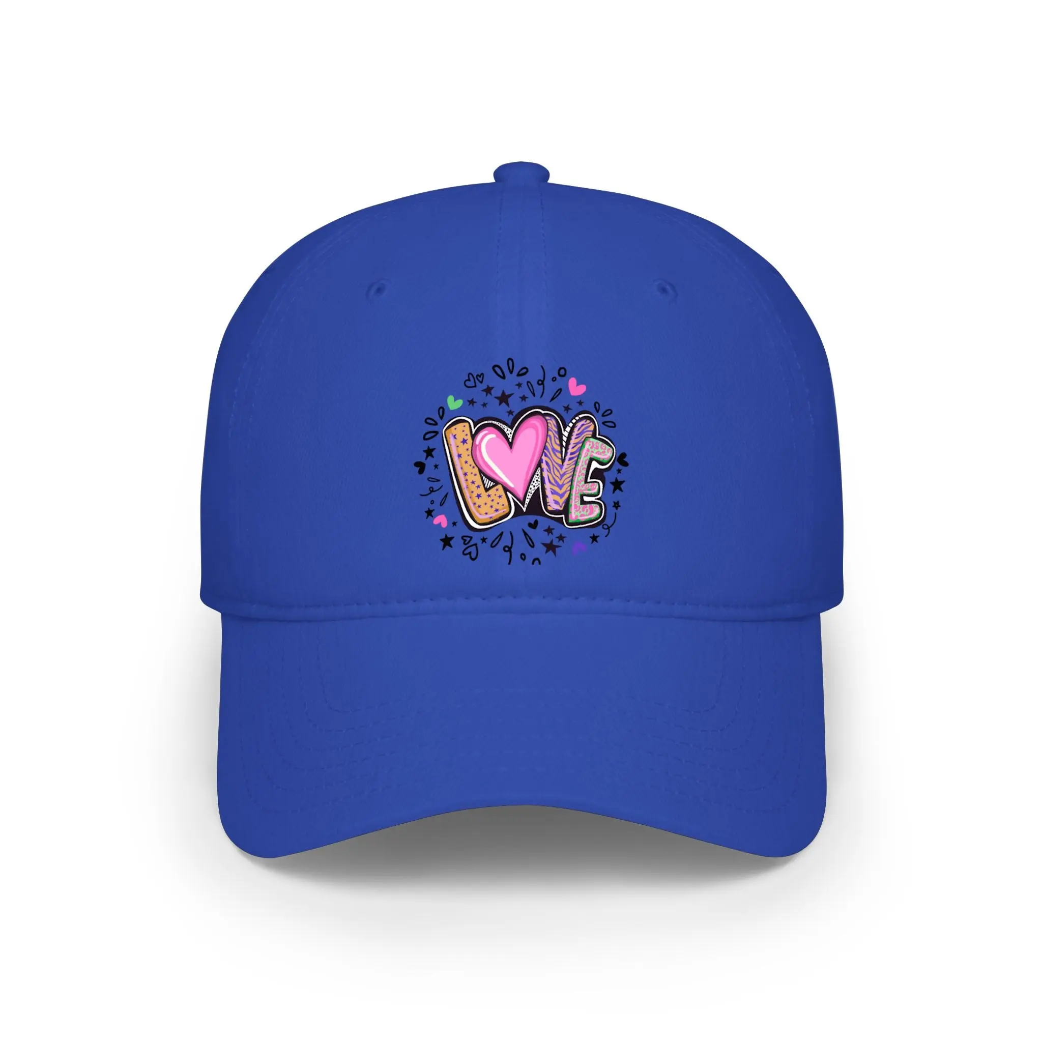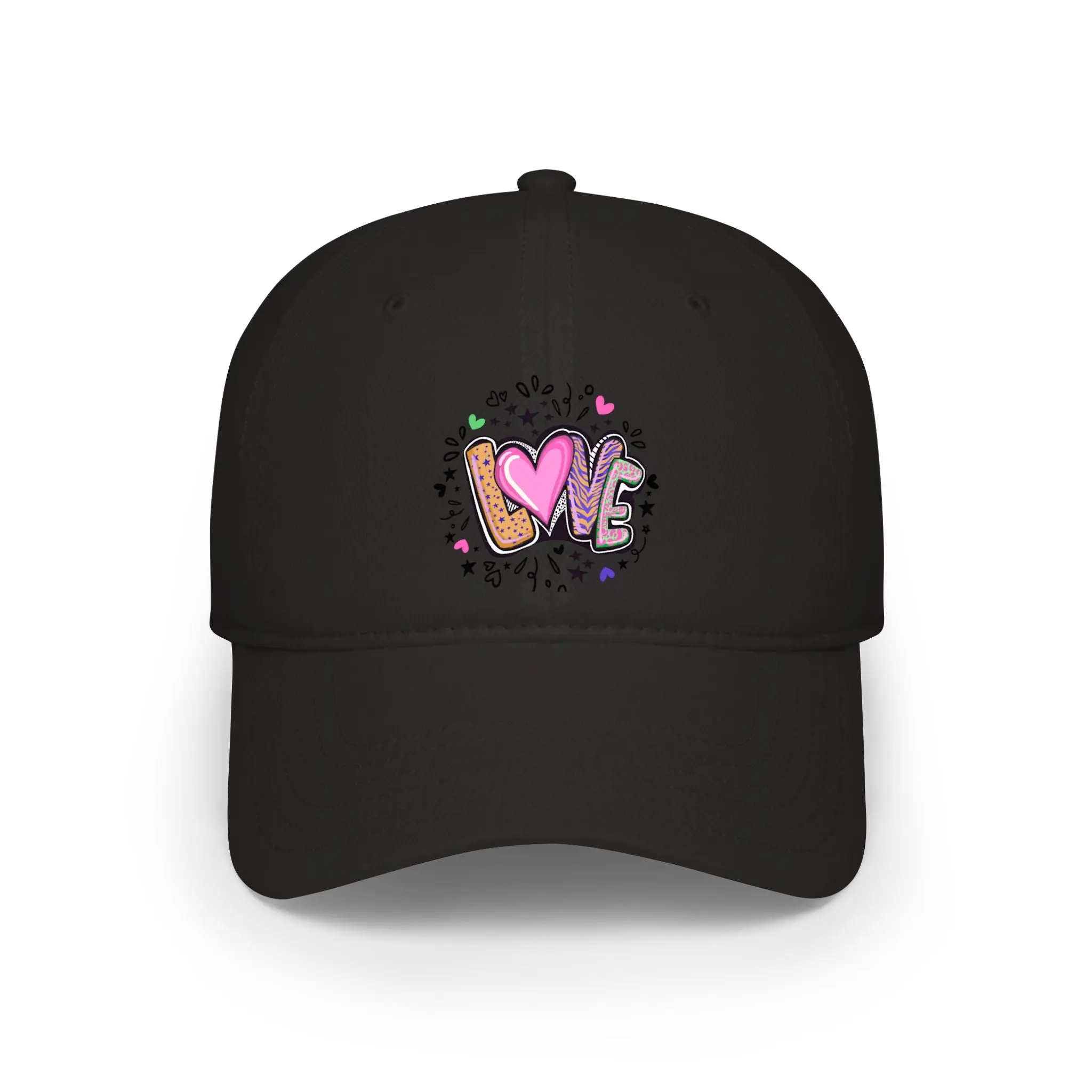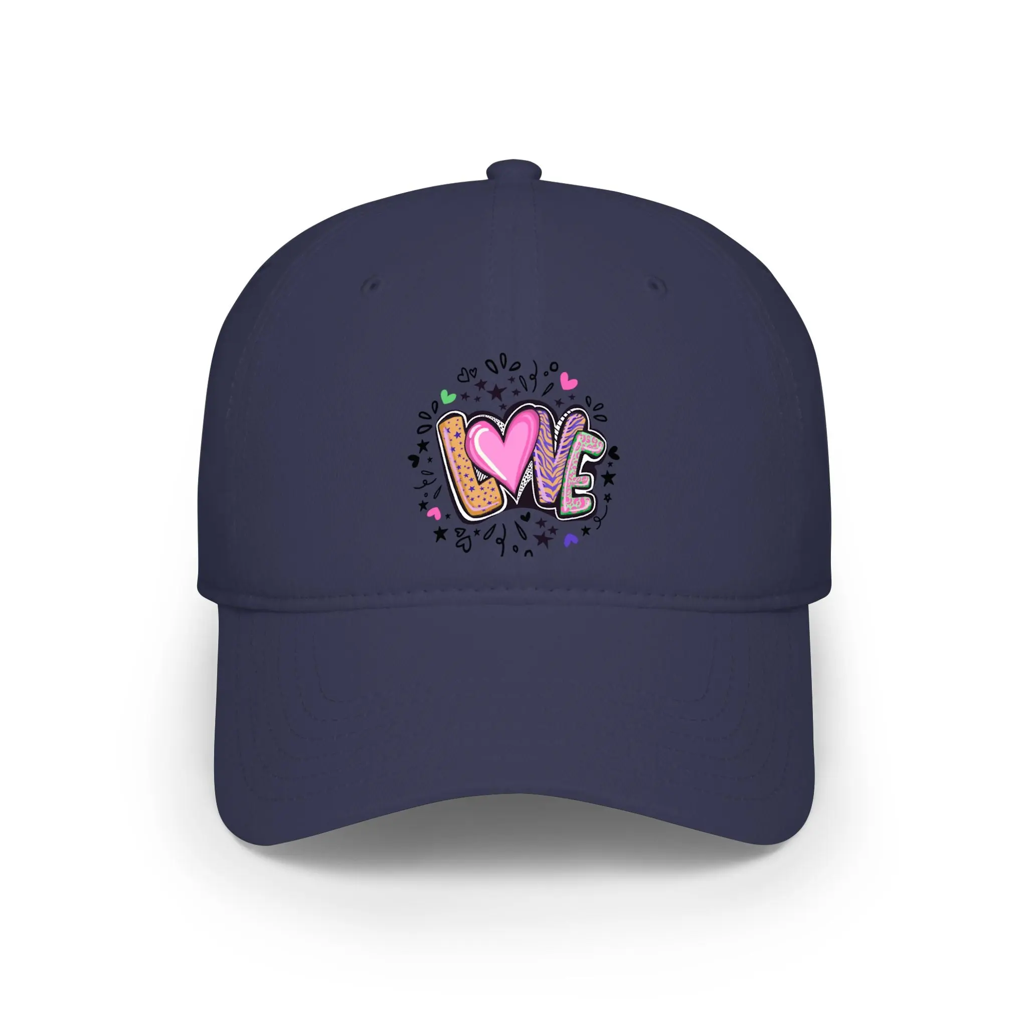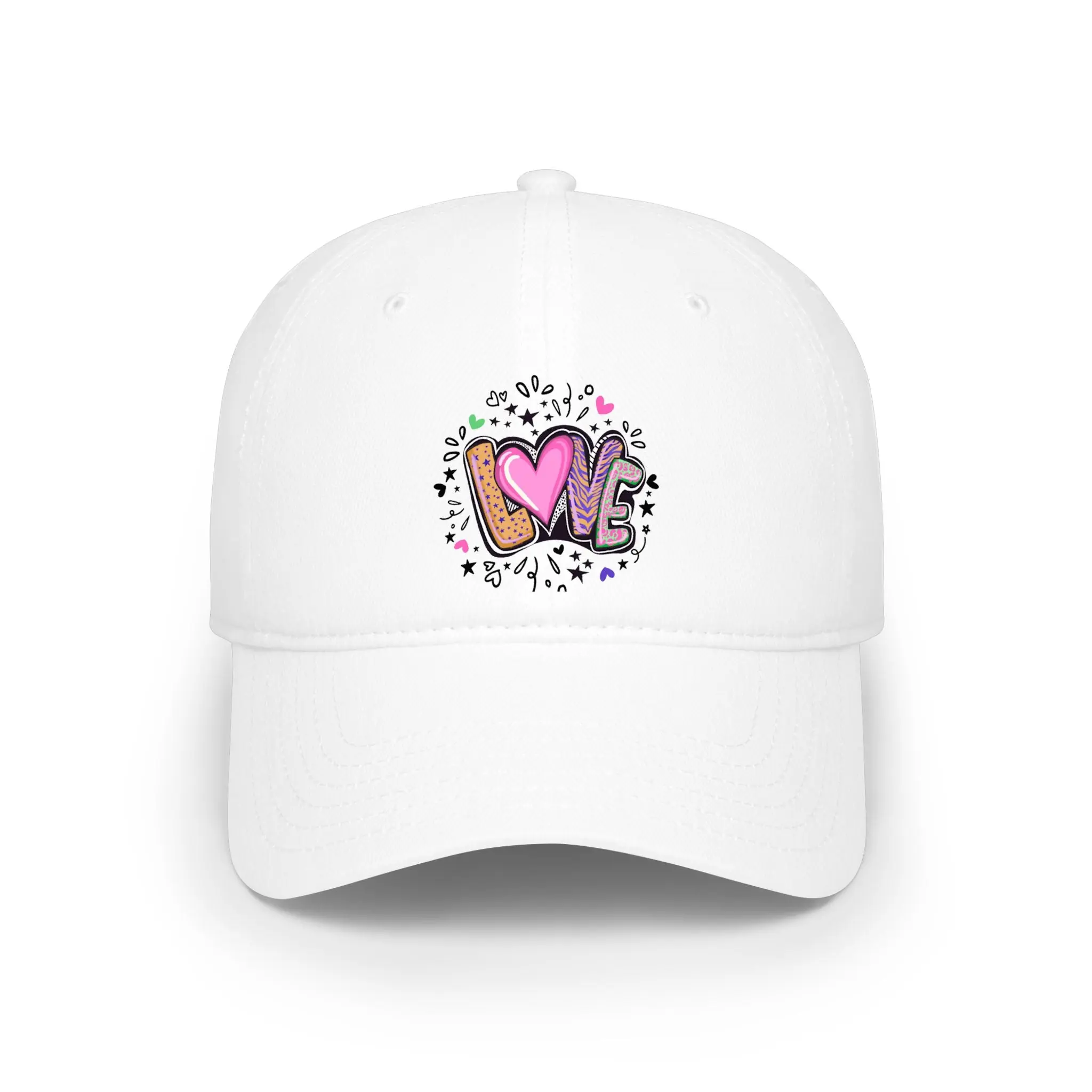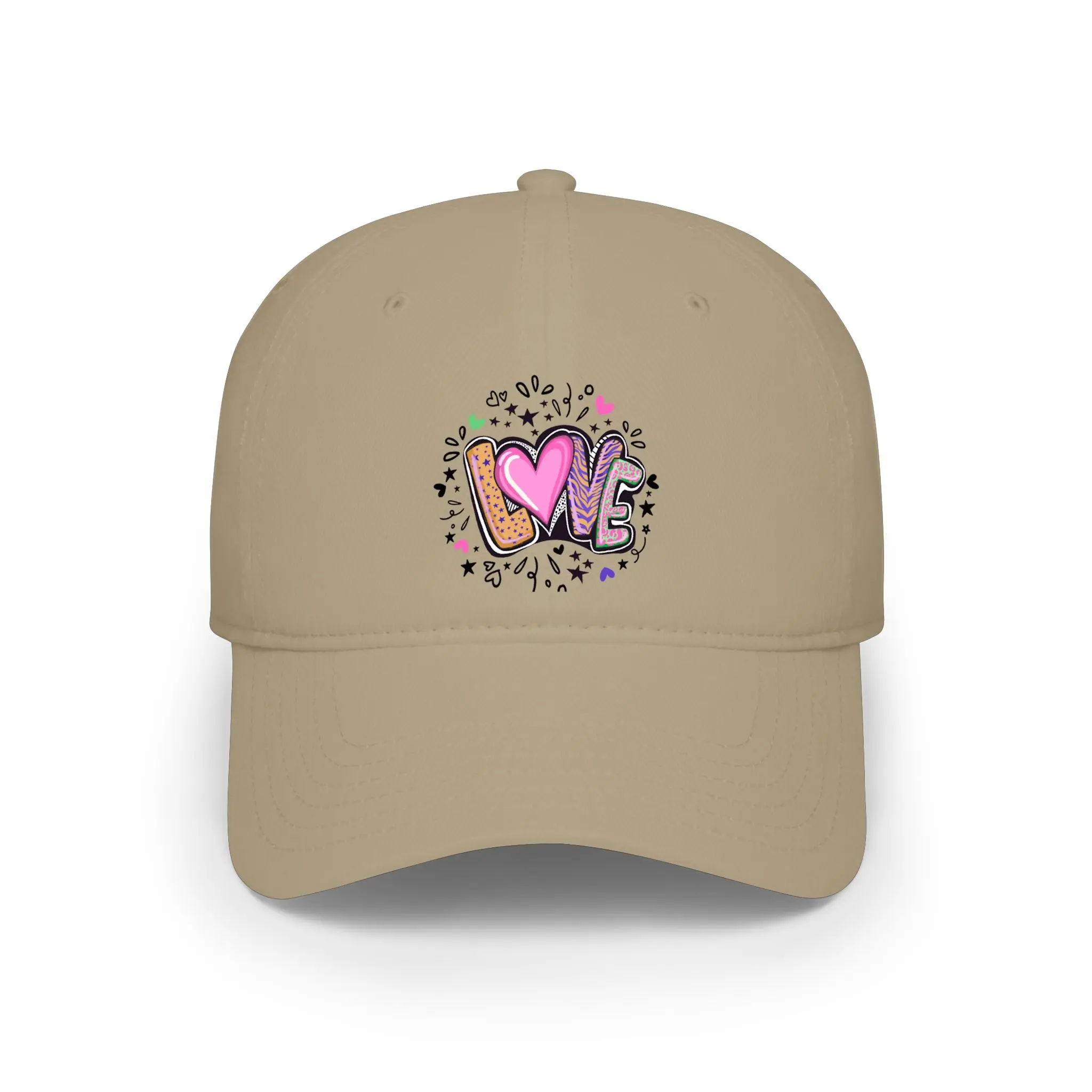 Lightweight and laid-back, this low-profile baseball cap brings playful, hand-drawn charm to everyday wear. The small, colorful “LOVE” artwork sits centered on the front — a doodle-like mix of hearts, paint splatters, and sketch marks that reads youthful and joyful. The unstructured crown creates a relaxed silhouette that sits close to the head for a casual, lived-in look. Soft cotton twill keeps the cap breathable and comfortable through long days out. An adjustable Velcro® strap lets you dial in the fit quickly, while reinforced interior seams add subtle durability so this cap stays in rotation.