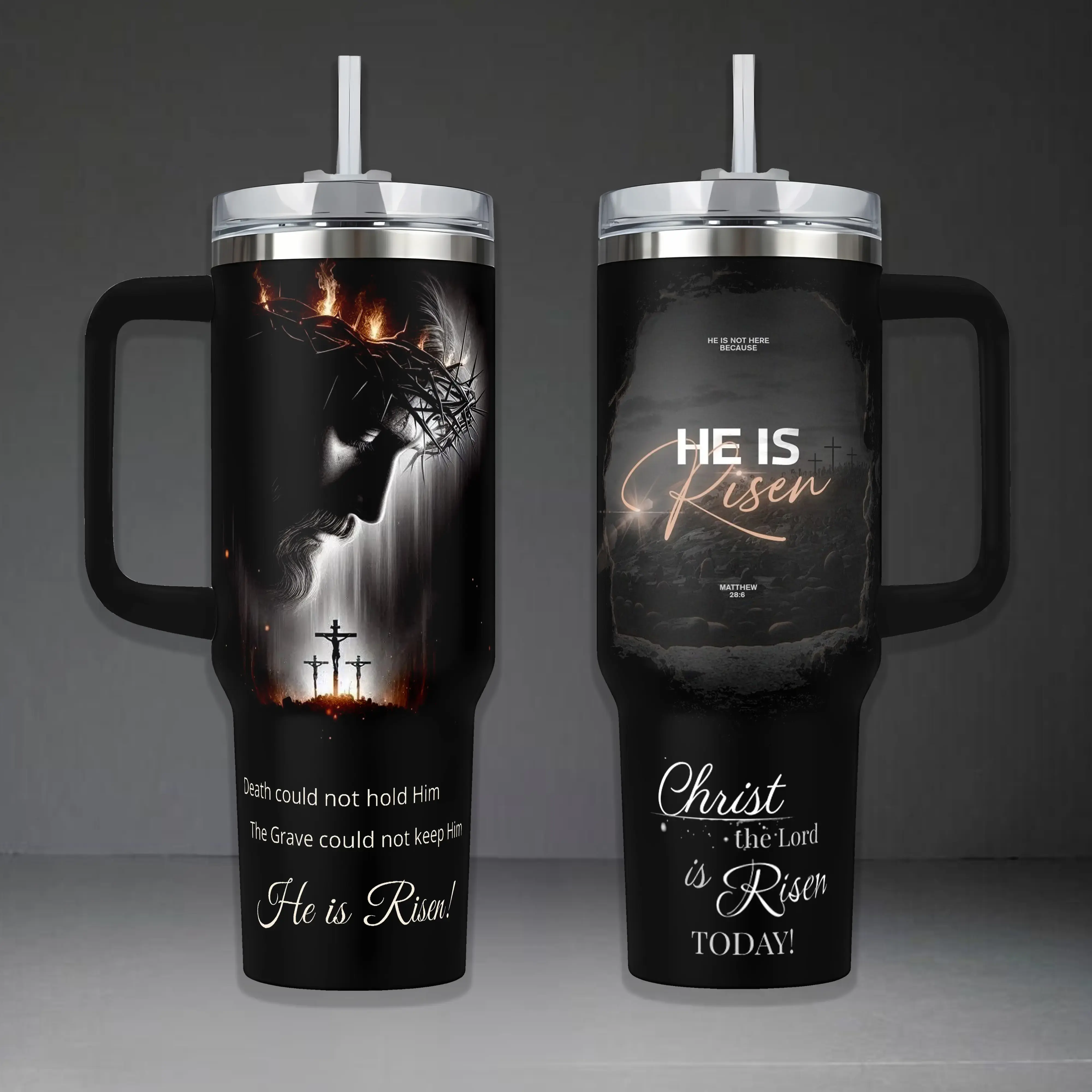 5. Christ The Lord Is Risen Today 40oz Insulated Tumbler with Handle, Religious Easter Resurrection Travel Mug, Jesus Crown of Thorns Double Printed Vacuum Flask, Christian Spiritual Gift, Heavy Duty Stainless Steel Cup with Straw