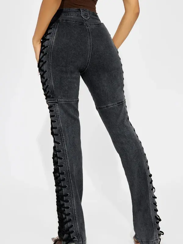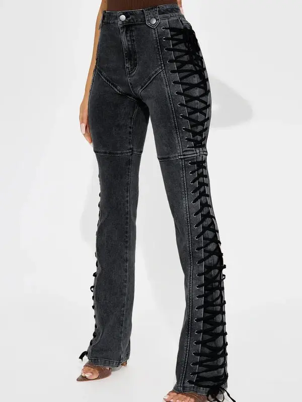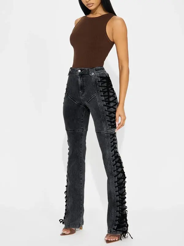 Leather Blakely High Waisted Bell Bottom Flare Jeans - Black