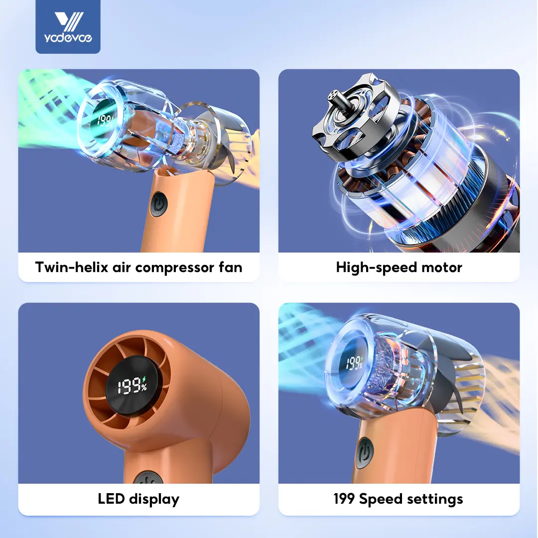 Yodevoe Mini portable handheld fan, rechargeable 3000mAh battery, 100 fan speeds, USB powered, suitable for travel, office, and personal use - Protective