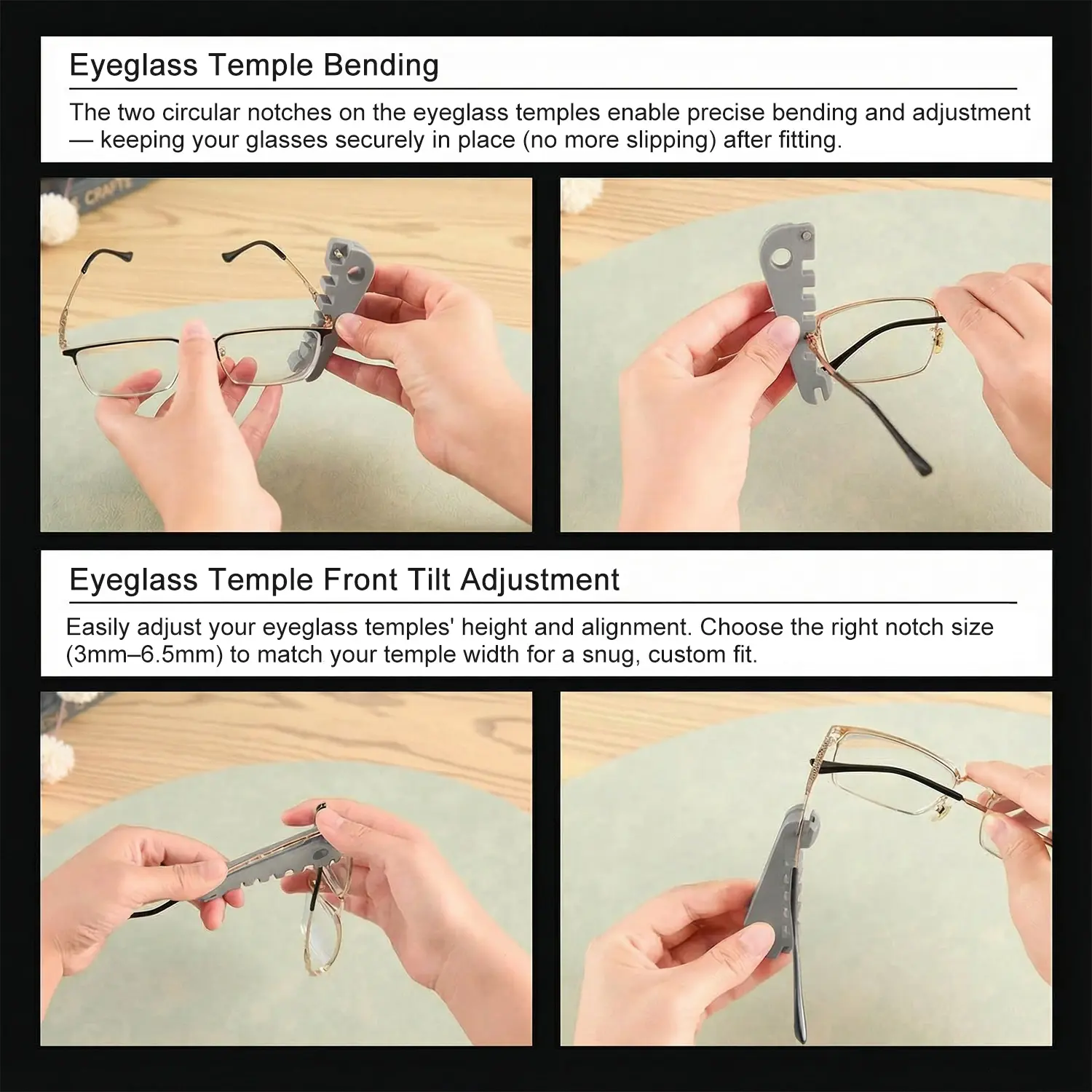 This tool is user-friendly, making it accessible for anyone. It helps in maintaining the curvature of your glasses, ensuring they stay in optimal condition. With this tool, you can easily fix and adjust your glasses at home, saving time and money.