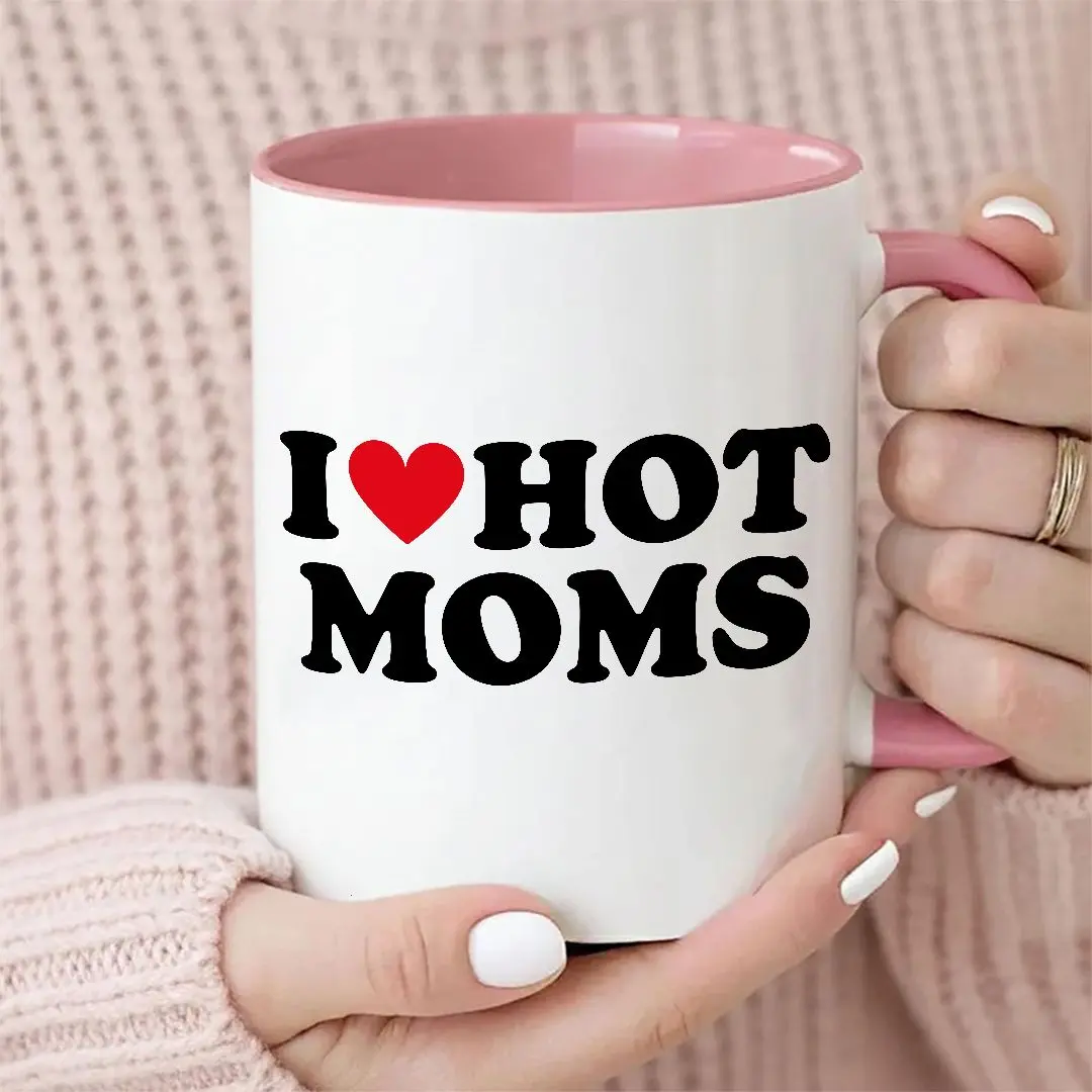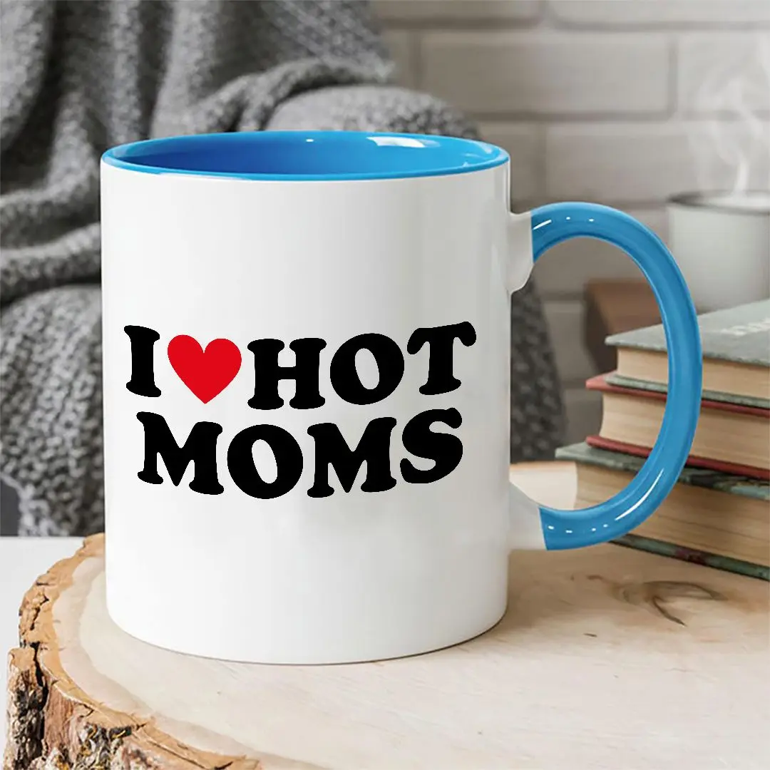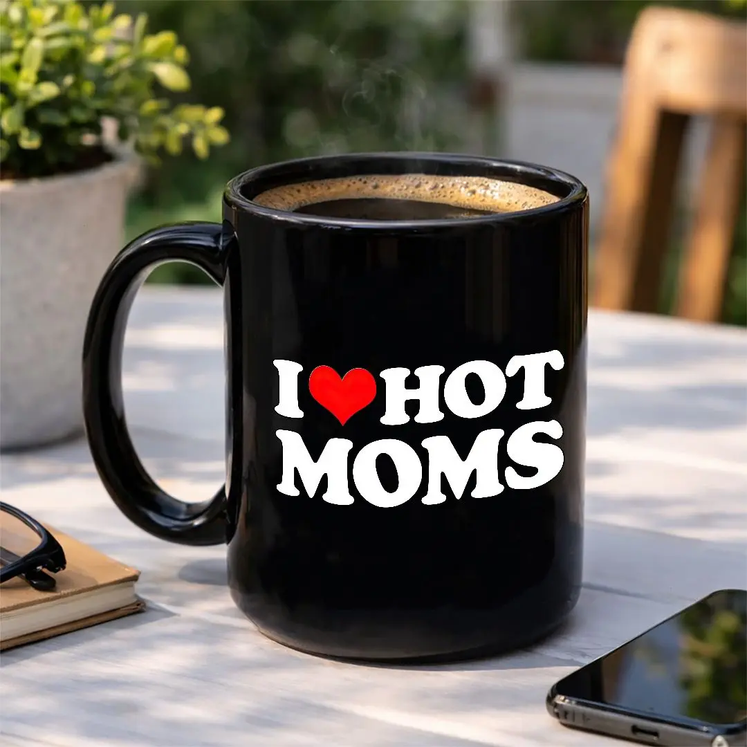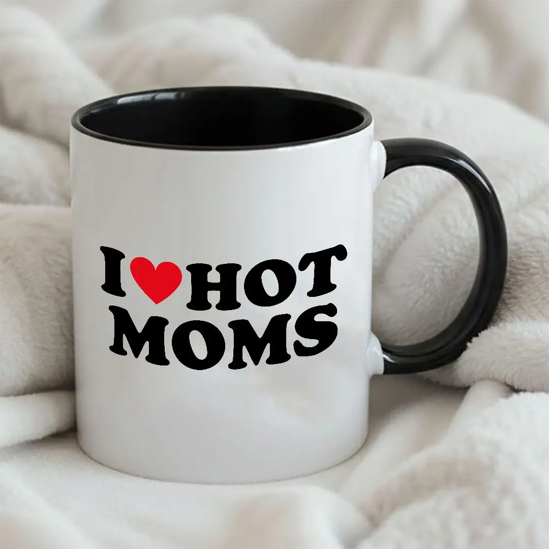 I Love Hot Moms Mug, Funny Mother's Day Coffee Mug, Cute Heart Mom Gift, Humor Mom Cup.