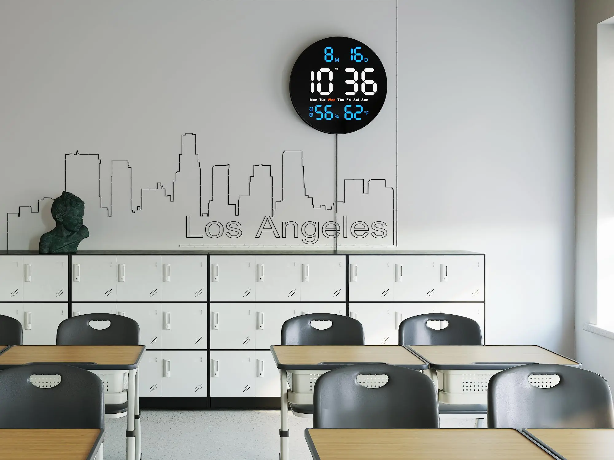 ·Large Digital Clock With 10-Inch LED Display For Easy Visibility: This large digital wall clock features a 10-inch LED screen with bold, clear numbers, allowing students to see the time easily from anywhere in the classroom. It also works perfectly as a large digital clock for seniors, reducing eye strain and improving readability from a distance