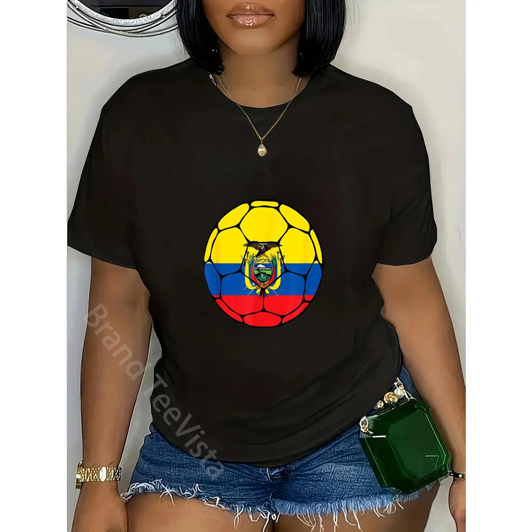 100% Cotton Ecuador Soccer Ball Flag Jersey Ecuadorian Football Gift T-Shirt