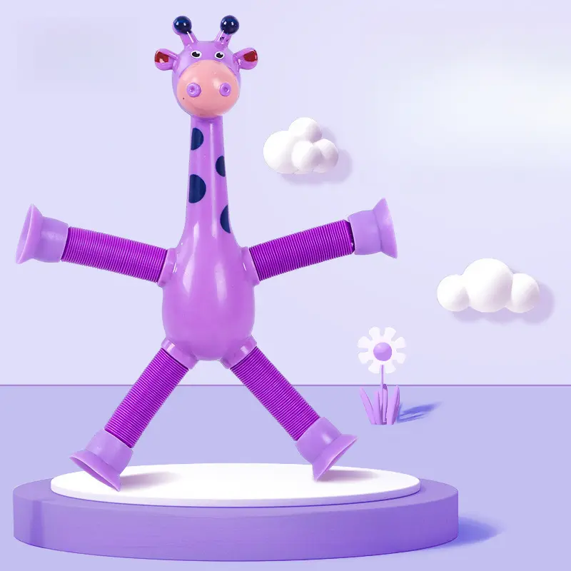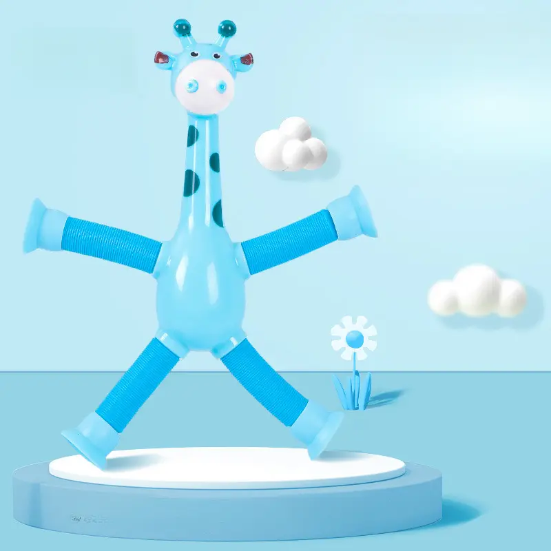 Suction Cup Giraffe Robot Telescopic Toy, Multifunctional Light-Up Extendable Tube, Children's Cartoon Creative Educational Toy