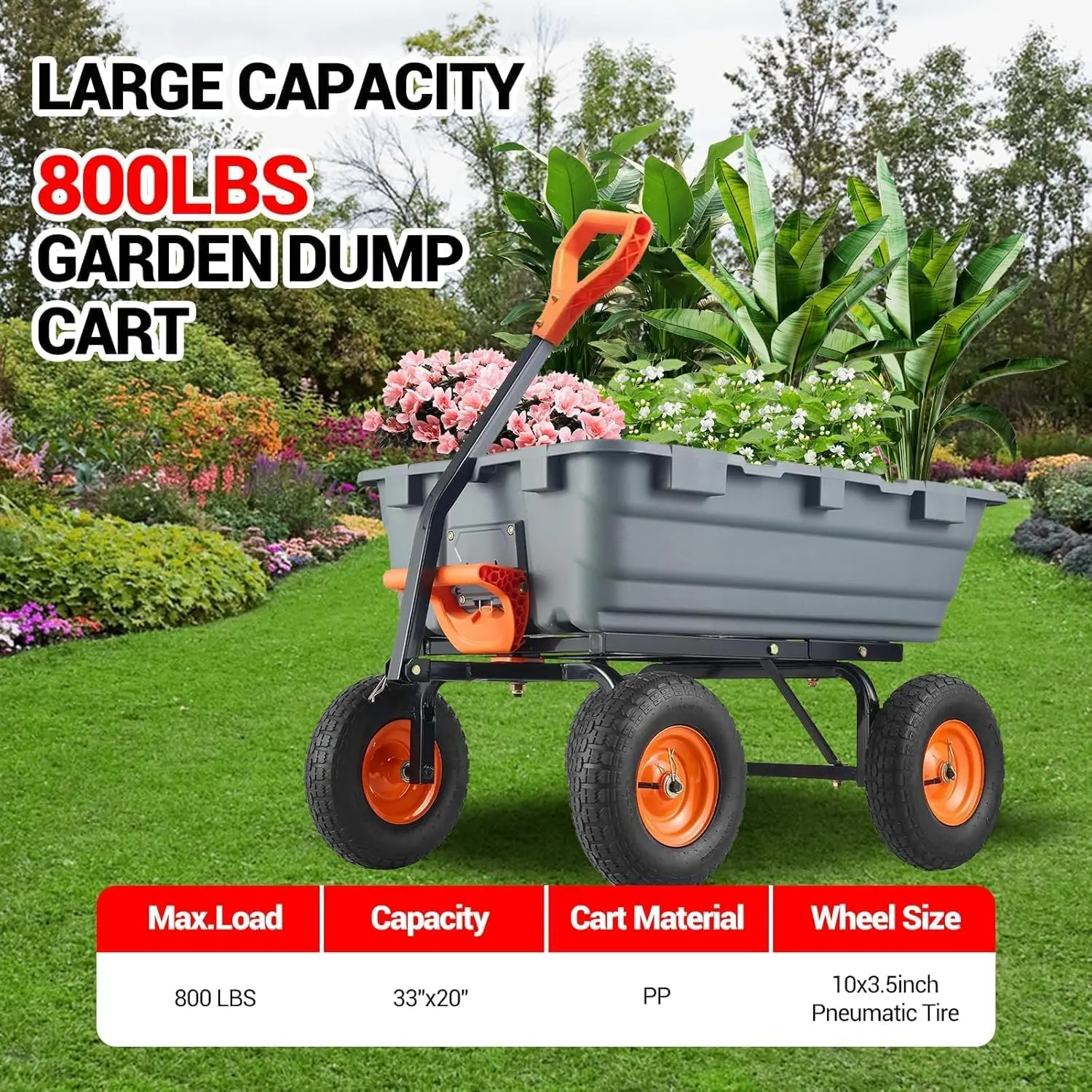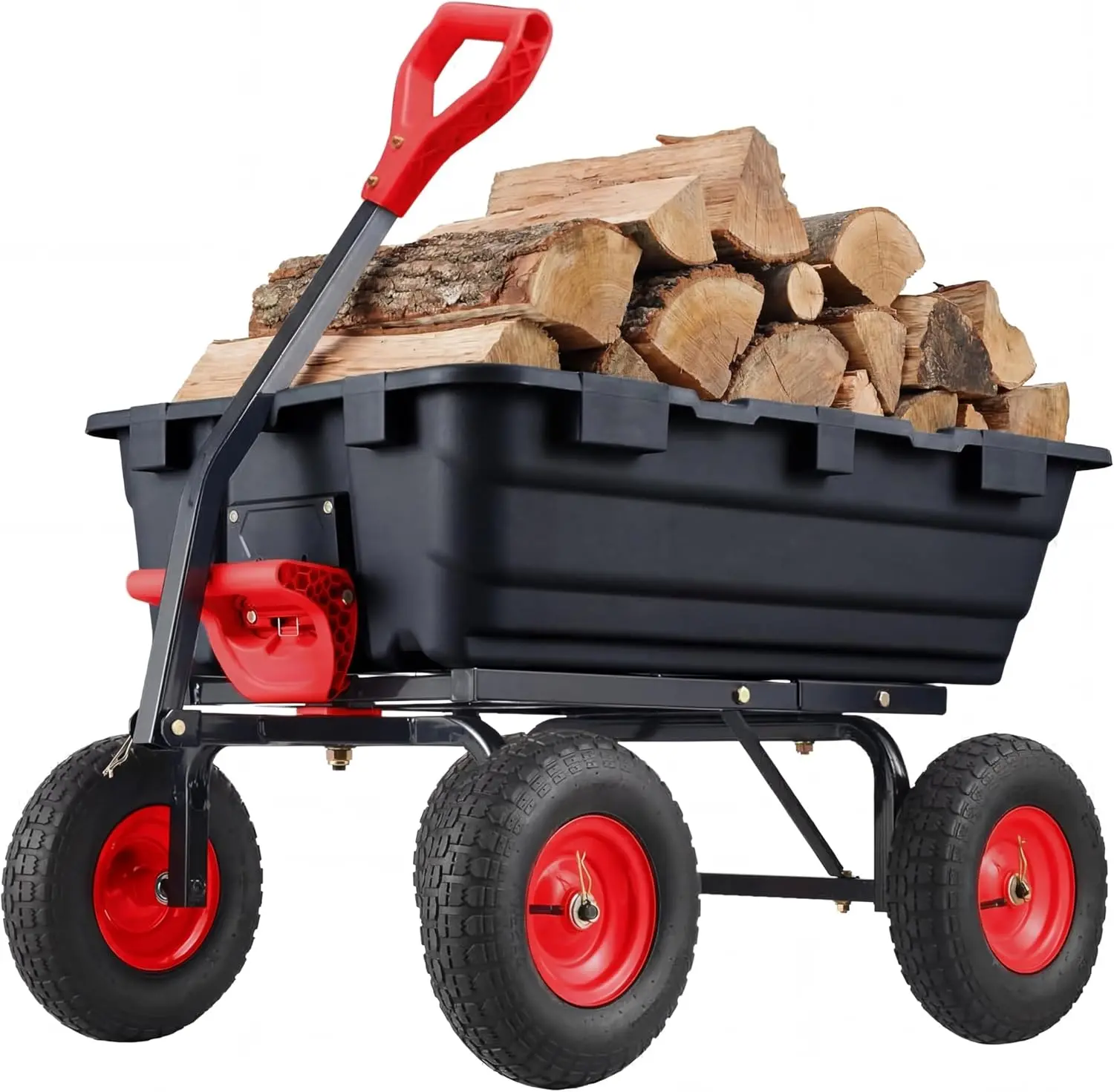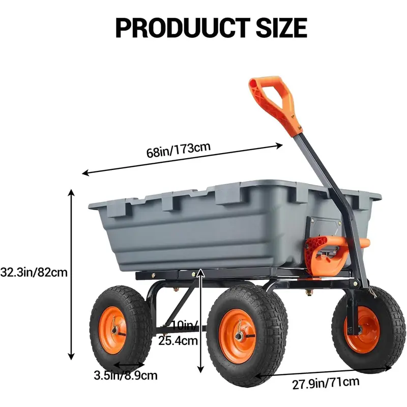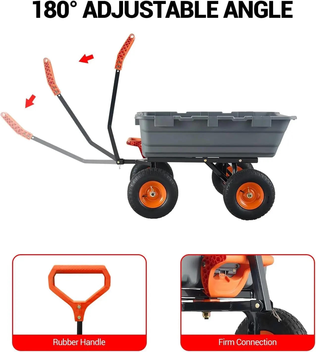 ·【QUICK-RELEASE DUMP MECHANISM & ADJUSTABLE HANDLE】 Unload in seconds with the dual-action dump system—use the hand-pull lever or foot-step release to tip the bed smoothly. Plus, the 180° adjustable handle and quick-release feature give you superior maneuverability, combining wheelbarrow ease with gorilla cart strength to save time and reduce strain.