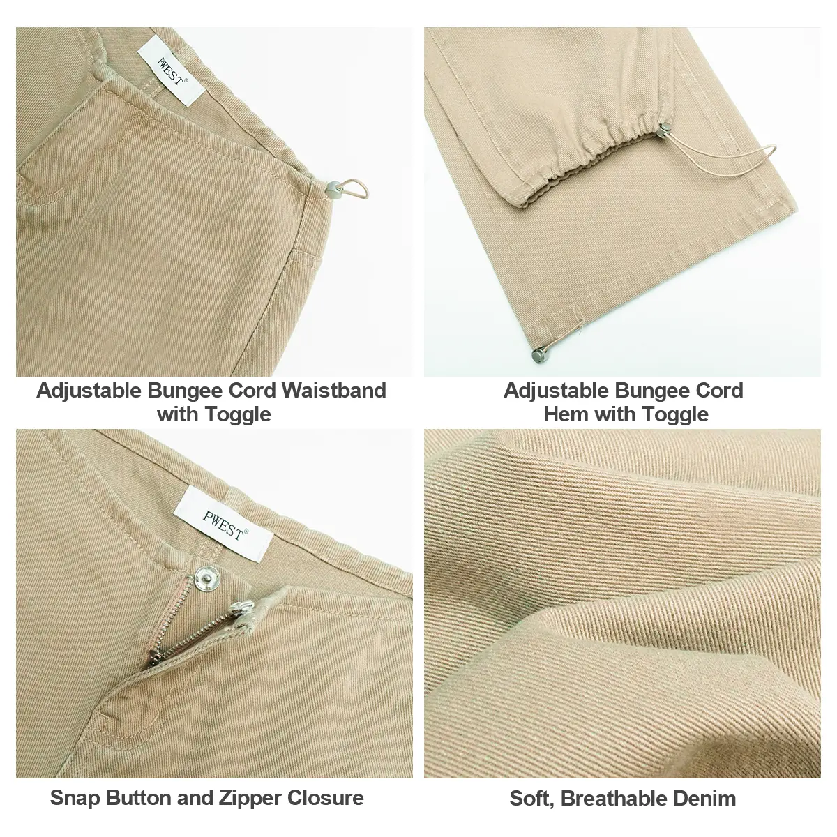 ·Adjustable Drawstring Hems: Features drawstring toggles at both hems, allowing the leg opening to be worn cinched or left straight for versatile styling.
