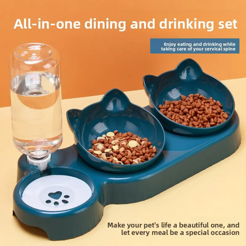 Tilted Cat Dog Double Bowls Neck Protection Anti-Spill Food Water Feeder Anti-Slip Cat Bowl for Cats Dogs Rechargeable Livestock Prod with Flexible Shaft pet stuff pepper spray dog bugs detector reverse slow feeder shaped harness silicone raised food bowl