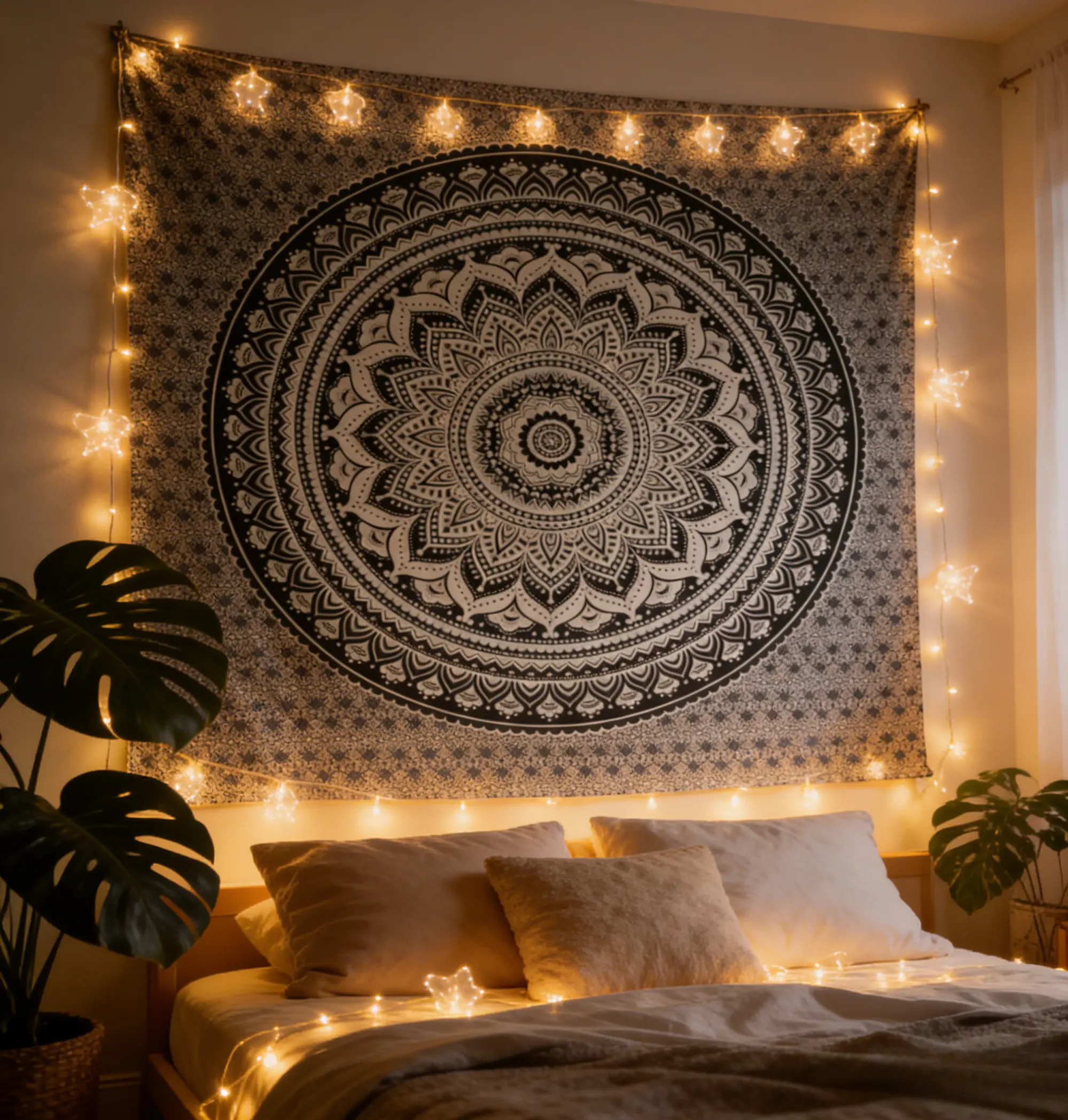 Looking to add a touch of Zen to your room? Our Black & White Mandala Tapestry is the perfect aesthetic upgrade. Whether you're decorating a dorm or creating a meditation corner, this intricate floral design brings peace and style to any wall.