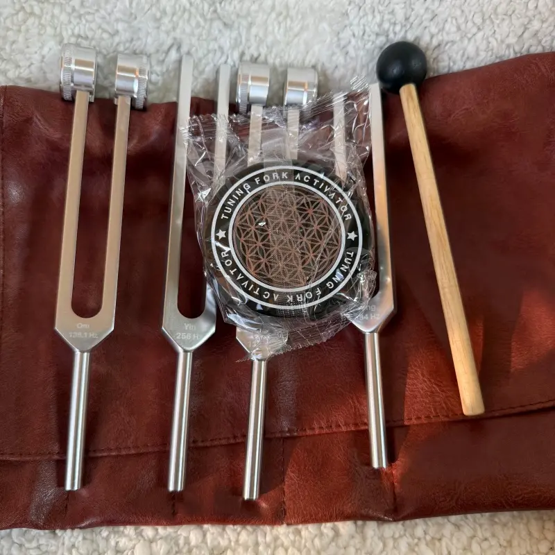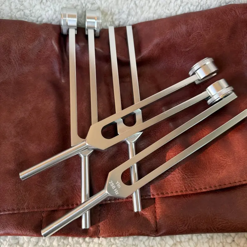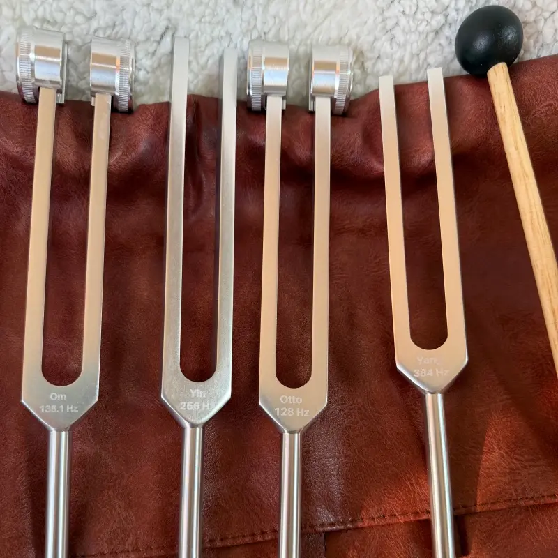 4x Weighted Tuning Forks (128Hz, 136.1Hz, 256Hz, 384Hz)
