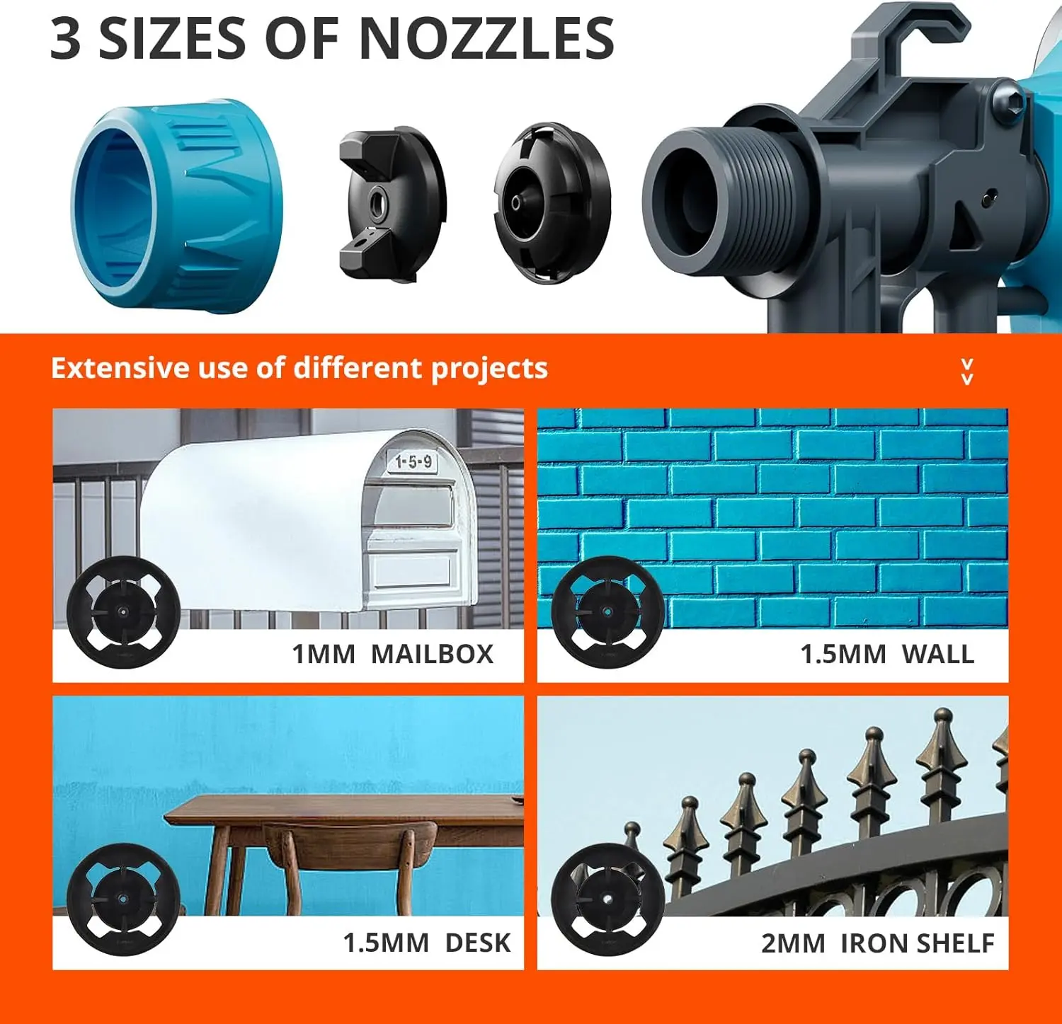 ·4 Nozzles: Includes four nozzles (1mm, 1.5mm, and 2mm) for versatile spraying tasks.