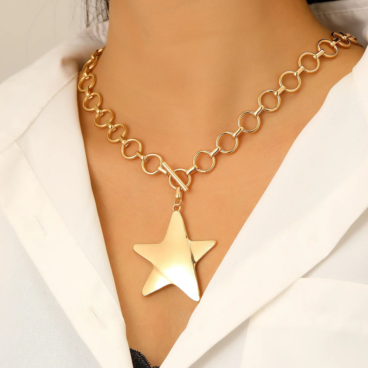 Geometric pentagram alloy pendant necklace - trendy, unique, and statement-making star clavicle chain