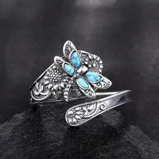 Vintage bohemian turquoise dragonfly sunflower wrap ring for women