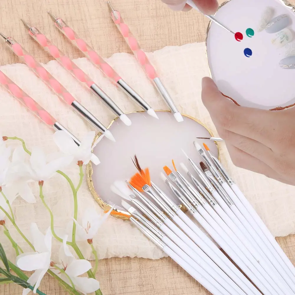 21pcs Full Nail Art Kit with Nail Brush Set, Striping Brushes for Long Lines Thin Details Sculpting Pattern Tracing Stylus Ball Embossing Stylu Fine Drawing Pen for Supply Manicure Tool Accessories for DIY Nail Design Home